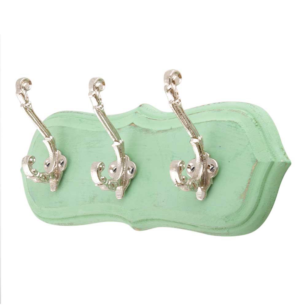 Green And Silver Small Wall Wooden Iron Hooks. A Perfect Complement to the Soft Tone of the Wood are these White Traditional Hat & Coat Hook Made of Genuine Porcelain and Brass. It can be use to Hang Jewellery, Leashes, Towels, Scarves, Light Weight Sweaters, Caps Etc.