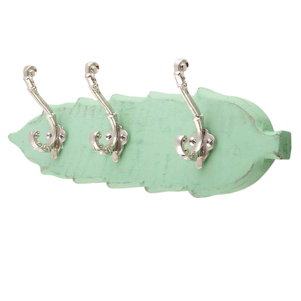 Green And Silver Small Wall Wooden Iron Hooks. A Perfect Complement to the Soft Tone of the Wood are these White Traditional Hat & Coat Hook Made of Genuine Porcelain and Brass. It can be use to Hang Jewellery, Leashes, Towels, Scarves, Light Weight Sweaters, Caps Etc.