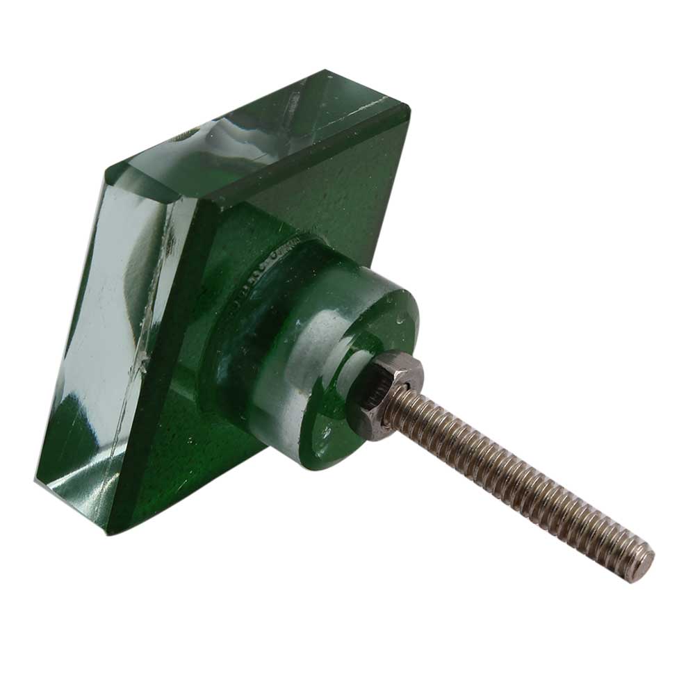 Green Square Flat Glass Knobs. Ideal for Drawer, Dresser, Cabinet, Wardrobe, Cupboard and almirah