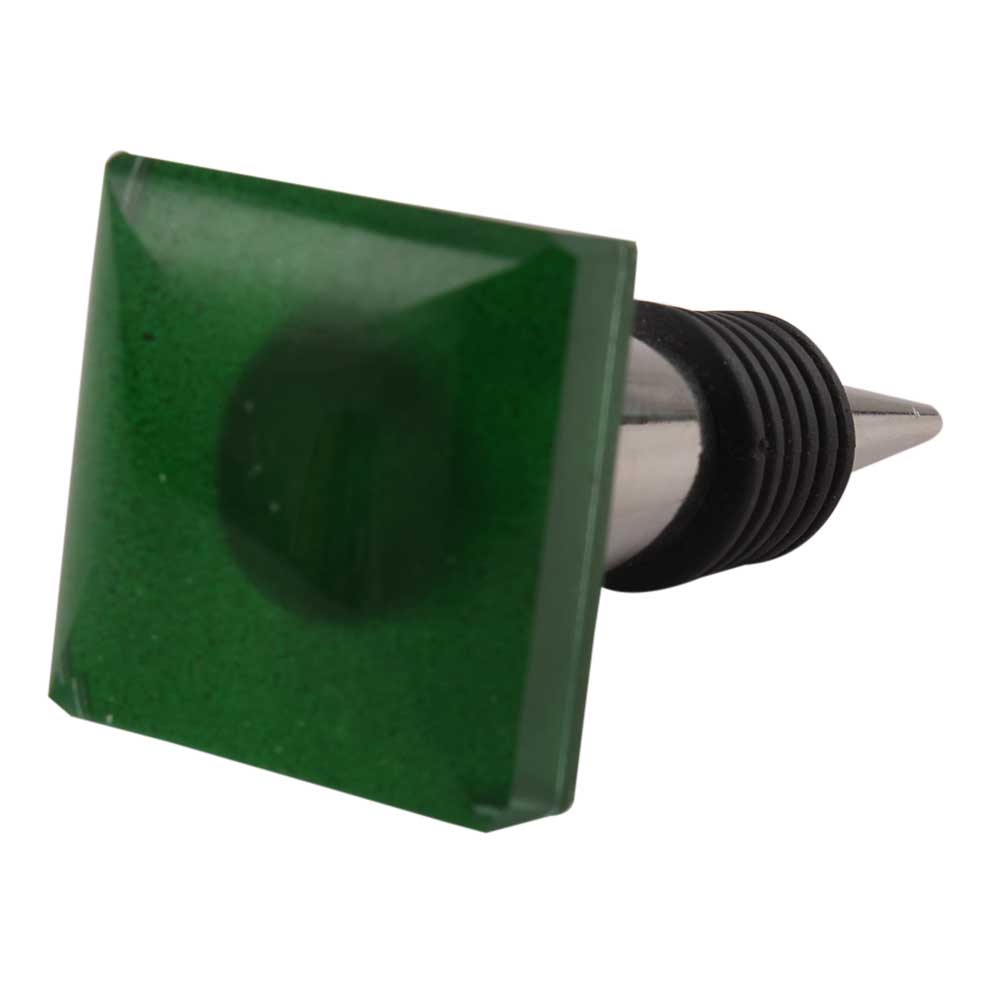 Green Square Flat Glass Wine Stopper. zinc alloy wine bottle stopper with attractive Jute Bag Packaging.