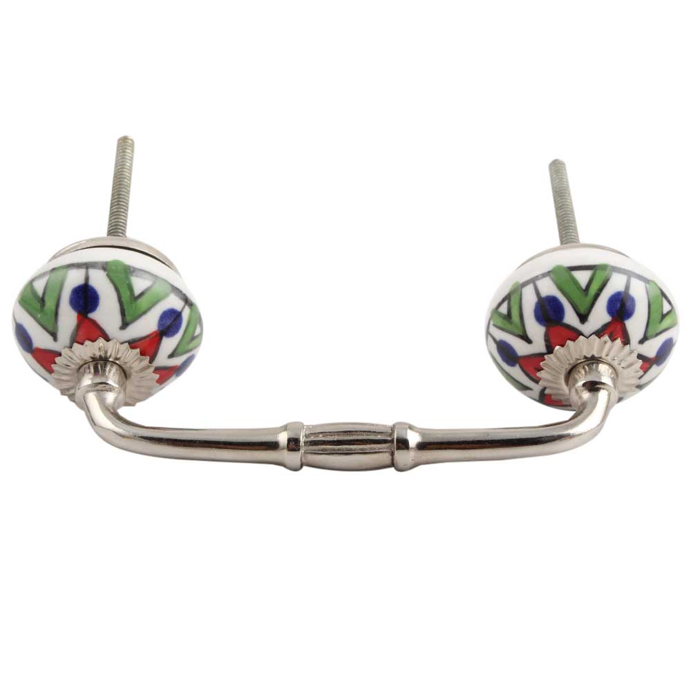 Green Triangle Ceramic Bridge Handle. Ideal for Drawer, Dresser, Cabinet, Wardrobe, Cupboard and Almirah.