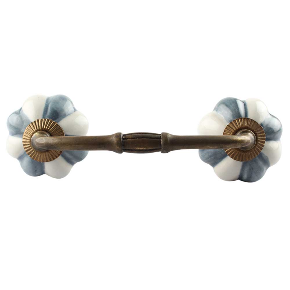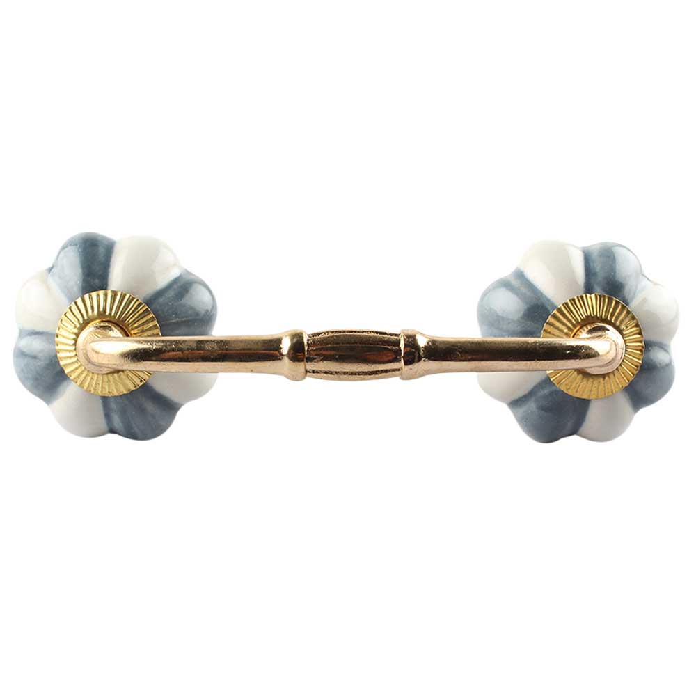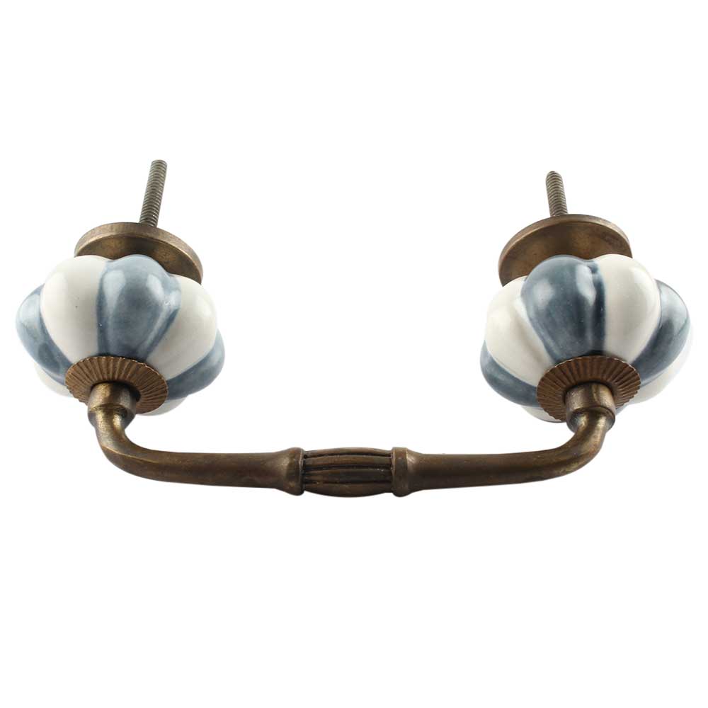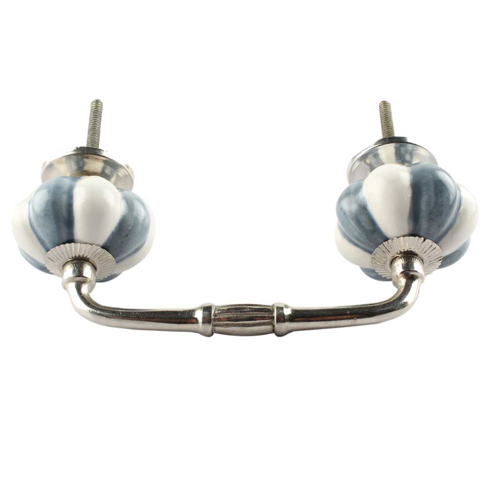Grey And White Ceramic Melon Bridge Handle. Ideal for Drawer, Dresser, Cabinet, Wardrobe, Cupboard and Almirah etc.