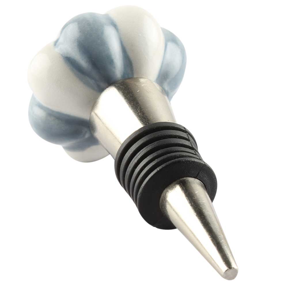 Grey And White Ceramic Melon Wine Stopper. Zinc Alloy Wine Bottle Stopper with Attractive Jute Bag Packaging.