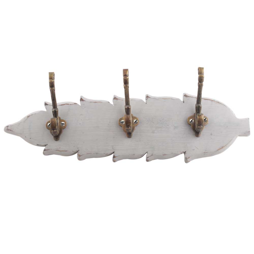 Grey Antique Small Wall Wooden Iron Hooks. A Perfect Complement to the Soft Tone of the Wood are these White Traditional Hat & Coat Hook Made of Genuine Porcelain and Brass. It can be use to Hang Jewellery, Leashes, Towels, Scarves, Light Weight Sweaters, Caps Etc.