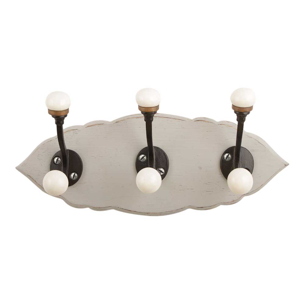 Grey Black Double Loop Ceramic Iron Wooden Hooks. A Perfect Complement to the Soft Tone of the Wood are these White Traditional Hat & Coat Hook Made of Genuine Porcelain and Brass. It can be use to Hang Jewellery, Leashes, Towels, Scarves, Light Weight Sweaters, Caps Etc.