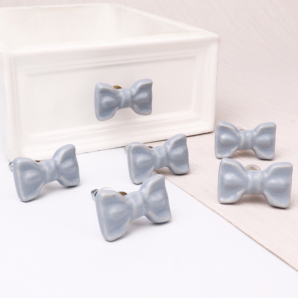 The Grey Ceramic Bow Cabinet Knob brings an element of refinement to your furniture. Whether it's a sleek modern dresser or a traditional cabinet, the subtle grey color and elegant bow shape elevate the look of any piece. This knob is a simple way to refresh your furniture, adding a touch of charm without overwhelming your space. It’s the ideal accessory for those who appreciate understated elegance in their home décor.