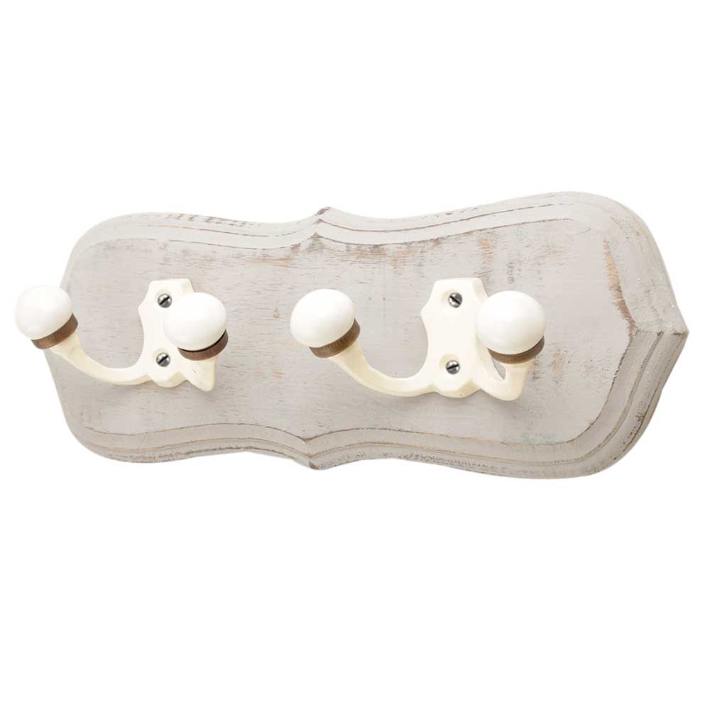 Grey Cream Double Loop Ceramic Iron Wooden Hooks. A Perfect Complement to the Soft Tone of the Wood are these White Traditional Hat & Coat Hook Made of Genuine Porcelain and Brass. It can be use to Hang Jewellery, Leashes, Towels, Scarves, Light Weight Sweaters, Caps Etc.