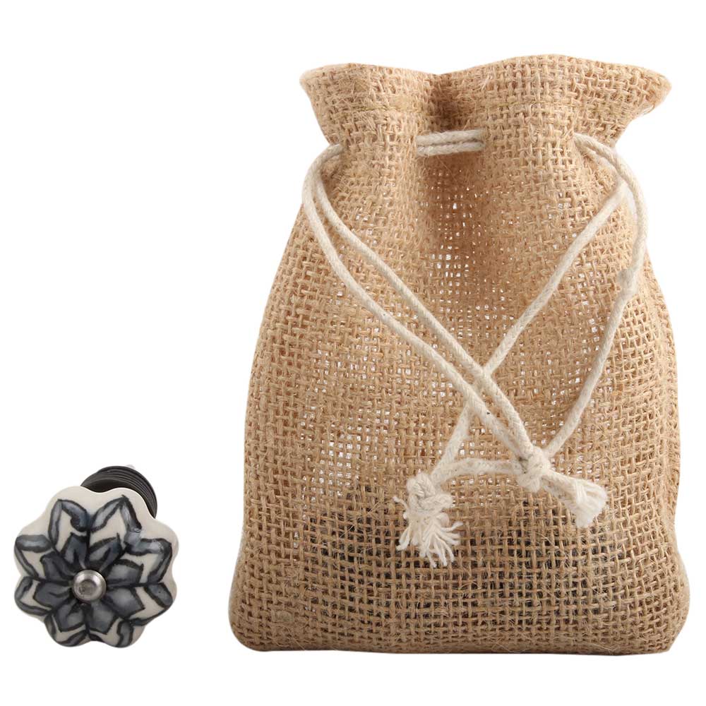 Grey Dahlia Medium Ceramic Wine Stopper.zinc alloy wine bottle stopper with attractive Jute Bag Packaging.