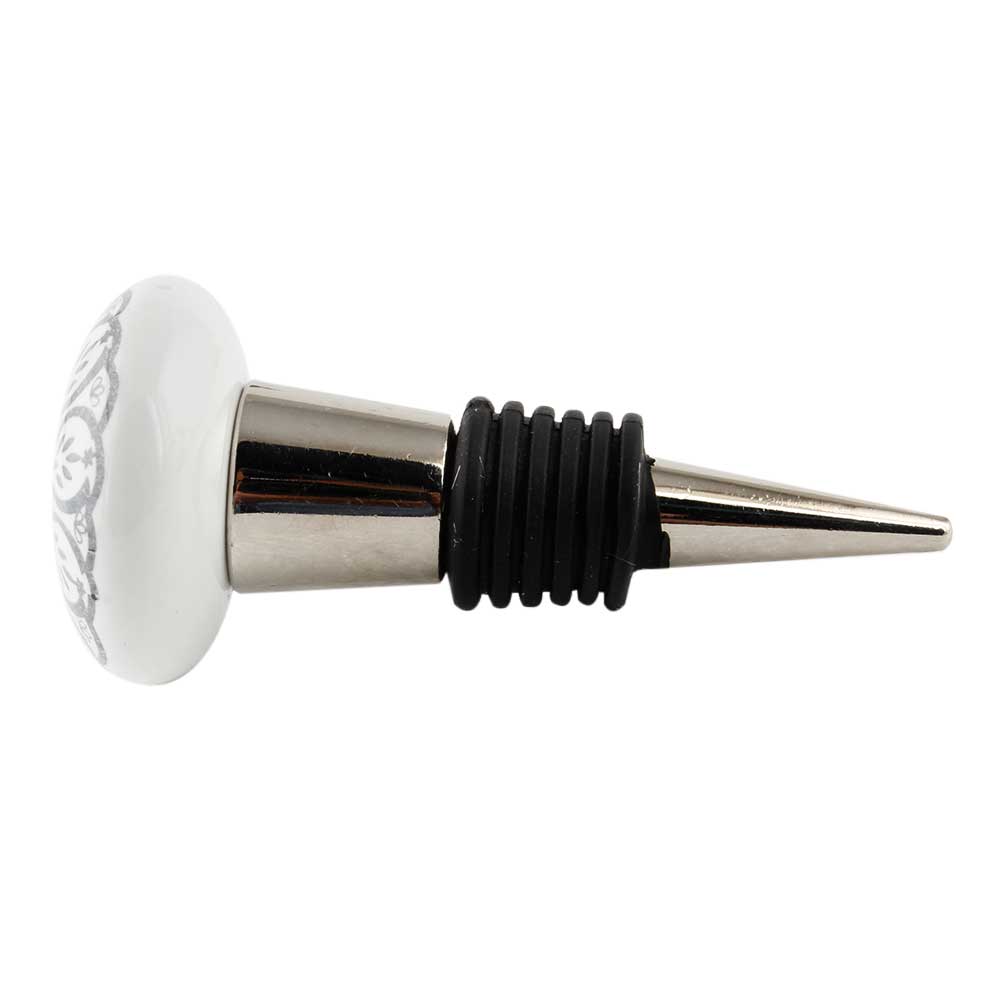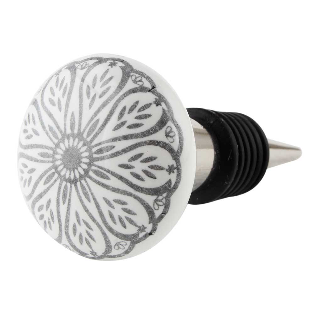 Grey Daisy Flower Flat Ceramic Wine Bottle Stopper. Zinc Alloy Wine Bottle Stopper with Attractive Jute Bag Packaging.