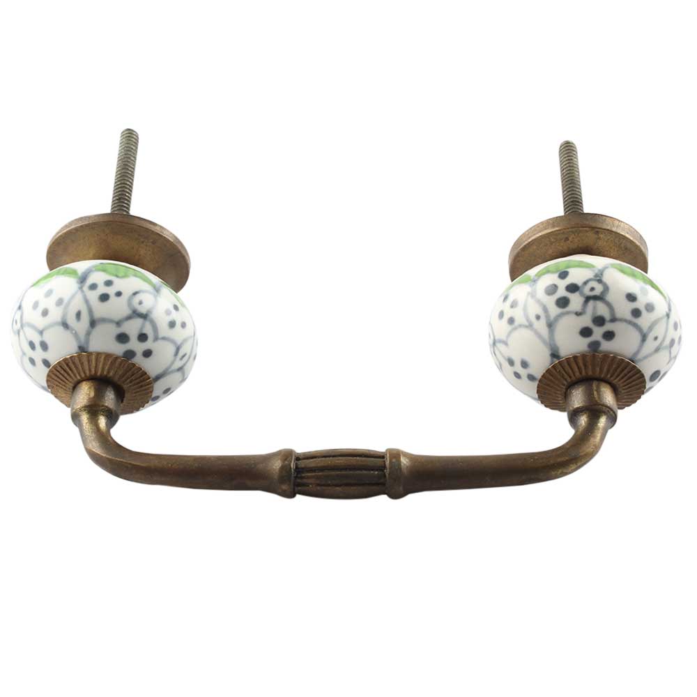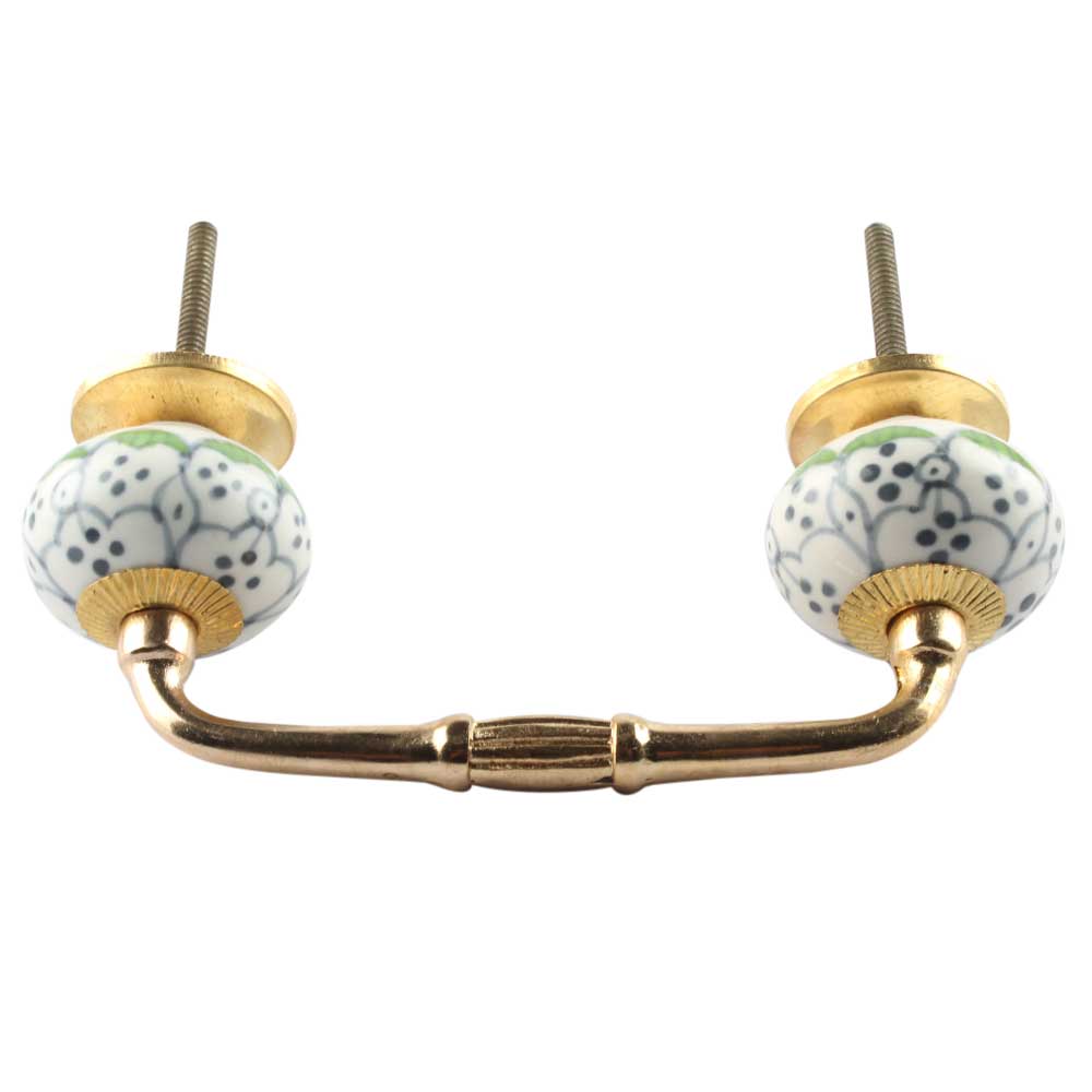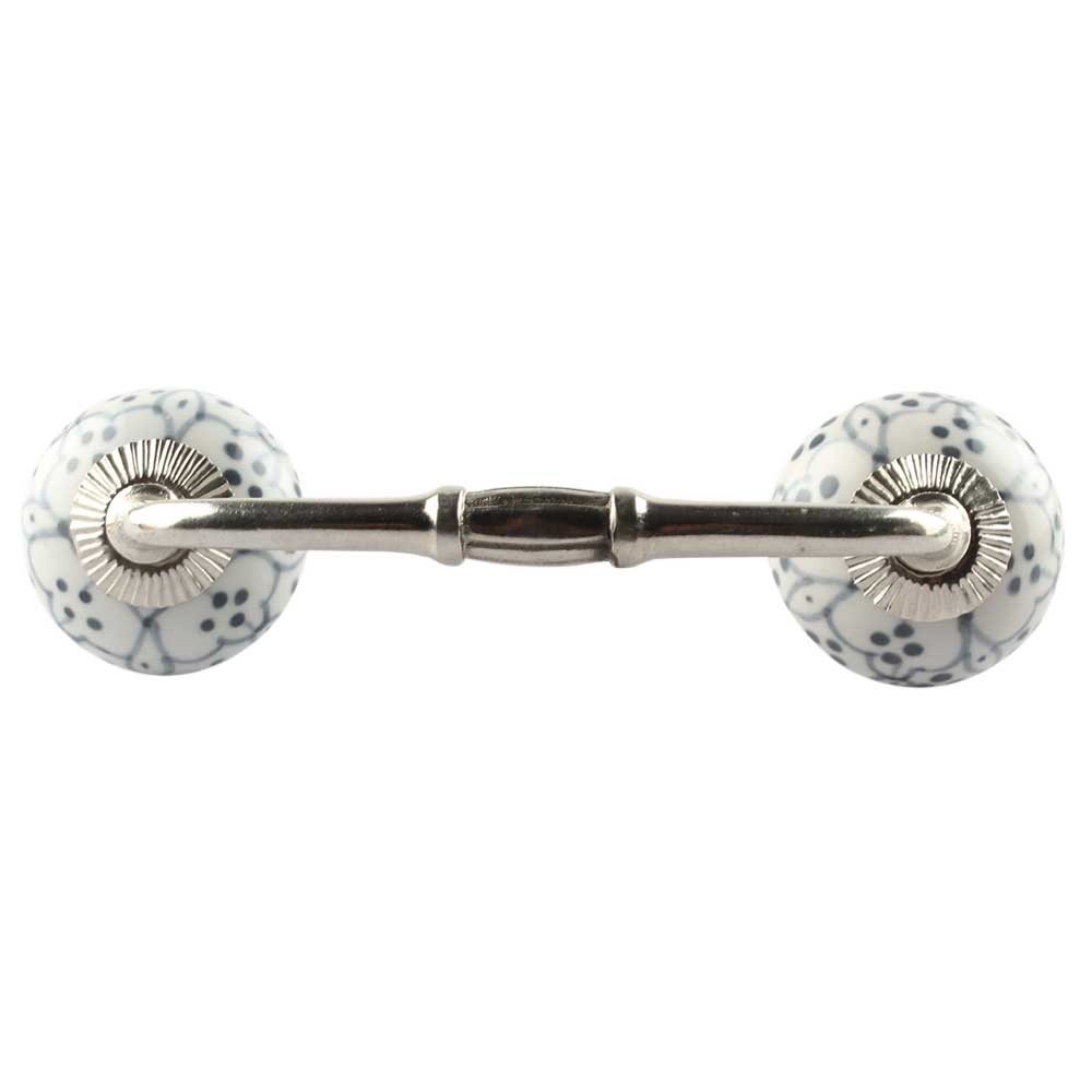 Grey Dotted Ceramic Floral Bridge Handle. Ideal for Drawer, Dresser, Cabinet, Wardrobe, Cupboard and Almirah etc.