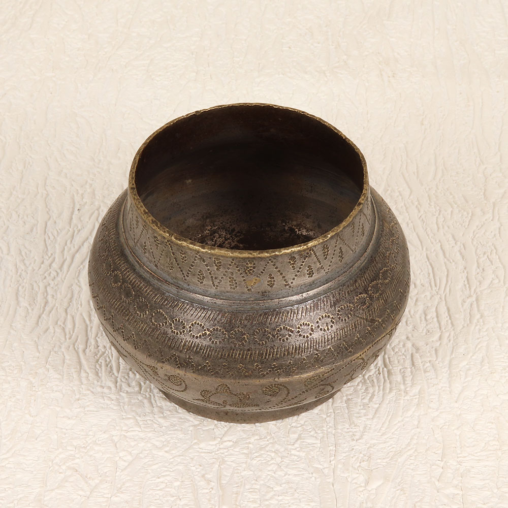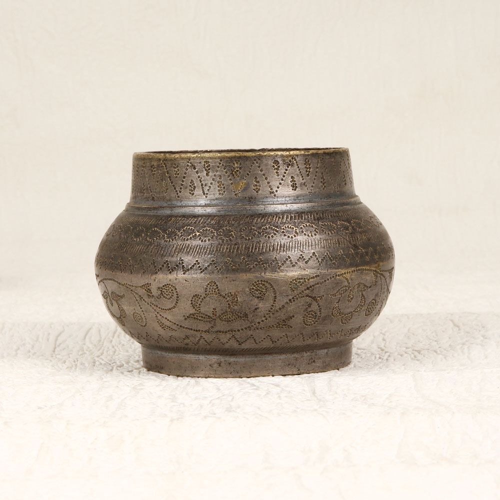 A Vintage Brass Holy Water Pot that is a testament to the artistry of highly skilled Indian artisans. Handmade from high-quality brass, this sacred vessel boasts intricate needle engravings, adding a touch of timeless elegance to your prayer, rituals, and havans. The antique grey finish enhances its vintage allure, making it a captivating addition to any home, office, restaurant, hotel, or café prayer room. This meticulously crafted holy water pot serves as a symbol of devotion, blending functionality with aesthetic appeal. Its versatility extends beyond religious practices, as it doubles as a charming decor piece that effortlessly complements various settings. Embrace its historical charm by incorporating it into your vintage collection, creating a curated display that reflects both spirituality and artistry. Share the blessings by presenting this handmade masterpiece to your family, friends or relatives on special, festive, or auspicious occasions.
