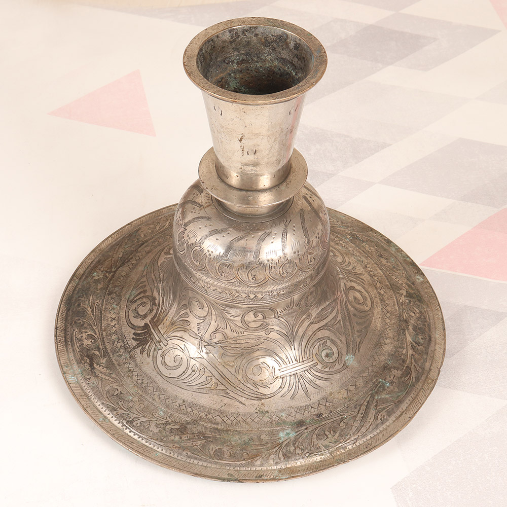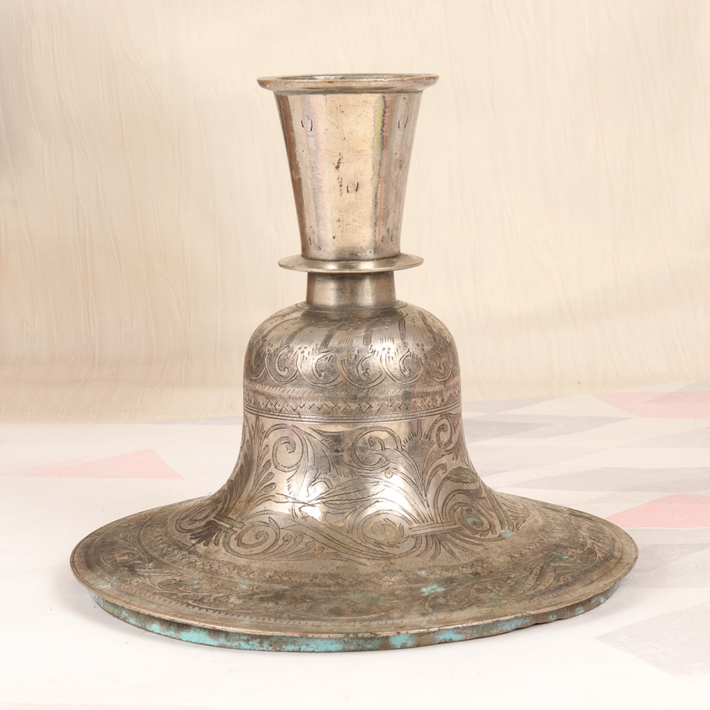 Elevate your hookah experience with this exquisite, vintage brass hookah base from the artisanal heart of Hyderabad. Meticulously crafted with intricate carvings and a sleek grey finish, this piece is a true work of art that will transform your smoking ritual into a sophisticated, sensory delight. This vintage brass hookah base is more than just a functional accessory - it's a testament to the rich cultural heritage of Hyderabad. Each piece is uniquely shaped and finished by skilled local artisans, ensuring that no two are exactly alike. Whether you're a seasoned hookah enthusiast or new to the ritual, this base will elevate your experience and leave a lasting impression on your guests. Imagine gathering friends around the warm glow of this stunning hookah, the fragrant smoke swirling through the air as you all savor the moment. The vintage brass base will become the centerpiece of your space, sparking conversation and creating an atmosphere of relaxation and sophistication. Upgrade your hookah game and treat yourself to this exceptional piece of Hyderabadi craftsmanship - a true work of art that will elevate your smoking experience to new heights.