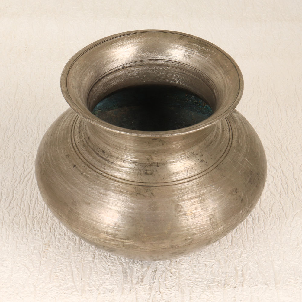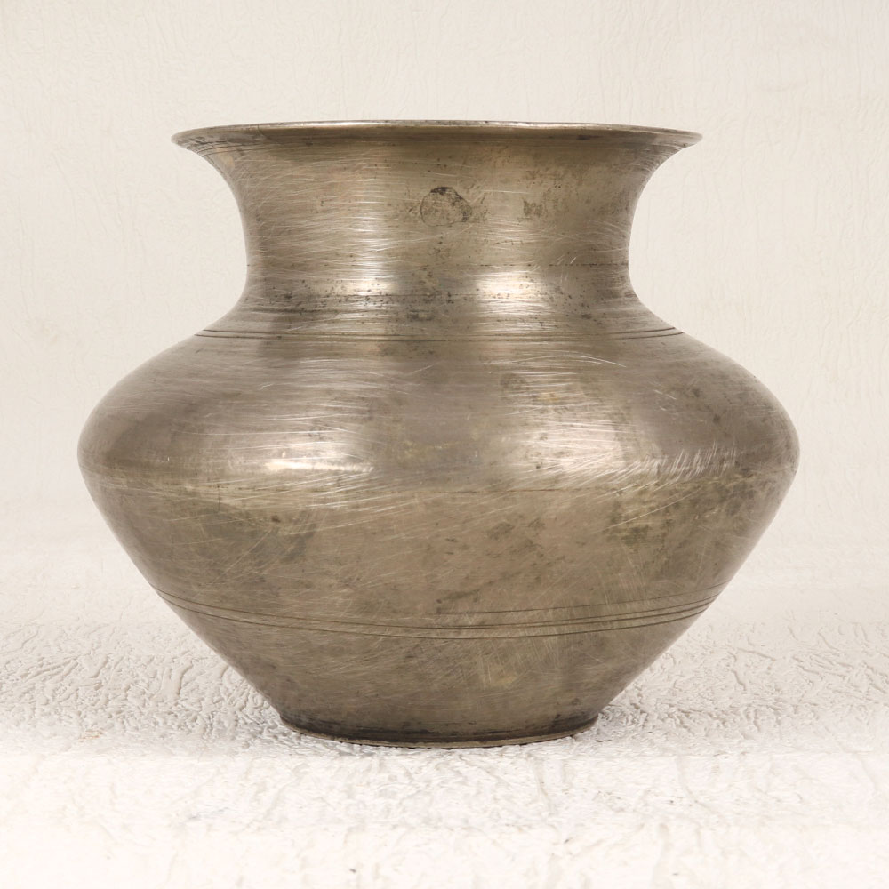 Immerse your sacred moments in timeless elegance with our Vintage Brass Holy Water Pot which is a divine creation handmade by skilled Indian artisans in the distinguished South Indian Art style. Crafted from high-quality brass, this pot exudes a mesmerizing antique grey finish, embodying the rich cultural heritage of India. Designed for prayer, rituals, and havans, this exquisite piece serves as a vessel to cradle holy water, infusing your spiritual space with sanctity and grace. Its versatility extends beyond religious practices, doubling as an enchanting indoor flower pot. Placing it in your home, office, restaurant, hotel, or cafe prayer room enhances the ambiance, creating an atmosphere of serenity. This artefact transcends mere functionality, making it a valuable addition to any vintage collection. The meticulously handcrafted details showcase the artisan's dedication to preserving traditional craftsmanship. Ideal as a thoughtful gift for your family, friends or relatives on special, festive, or auspicious occasions, this Vintage Brass Holy Water Pot is a symbol of enduring beauty and spiritual significance.