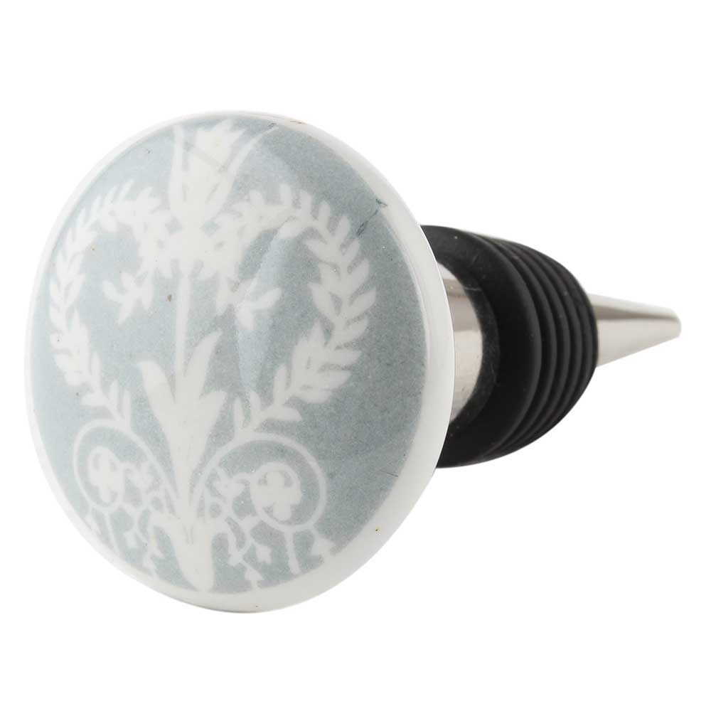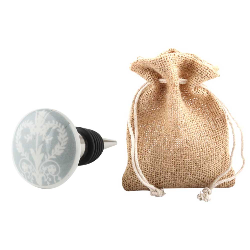 Grey Floral FlaCeramic Wine Bottle Stopper. Zinc Alloy Wine Bottle Stopper with Attractive Jute Bag Packaging.