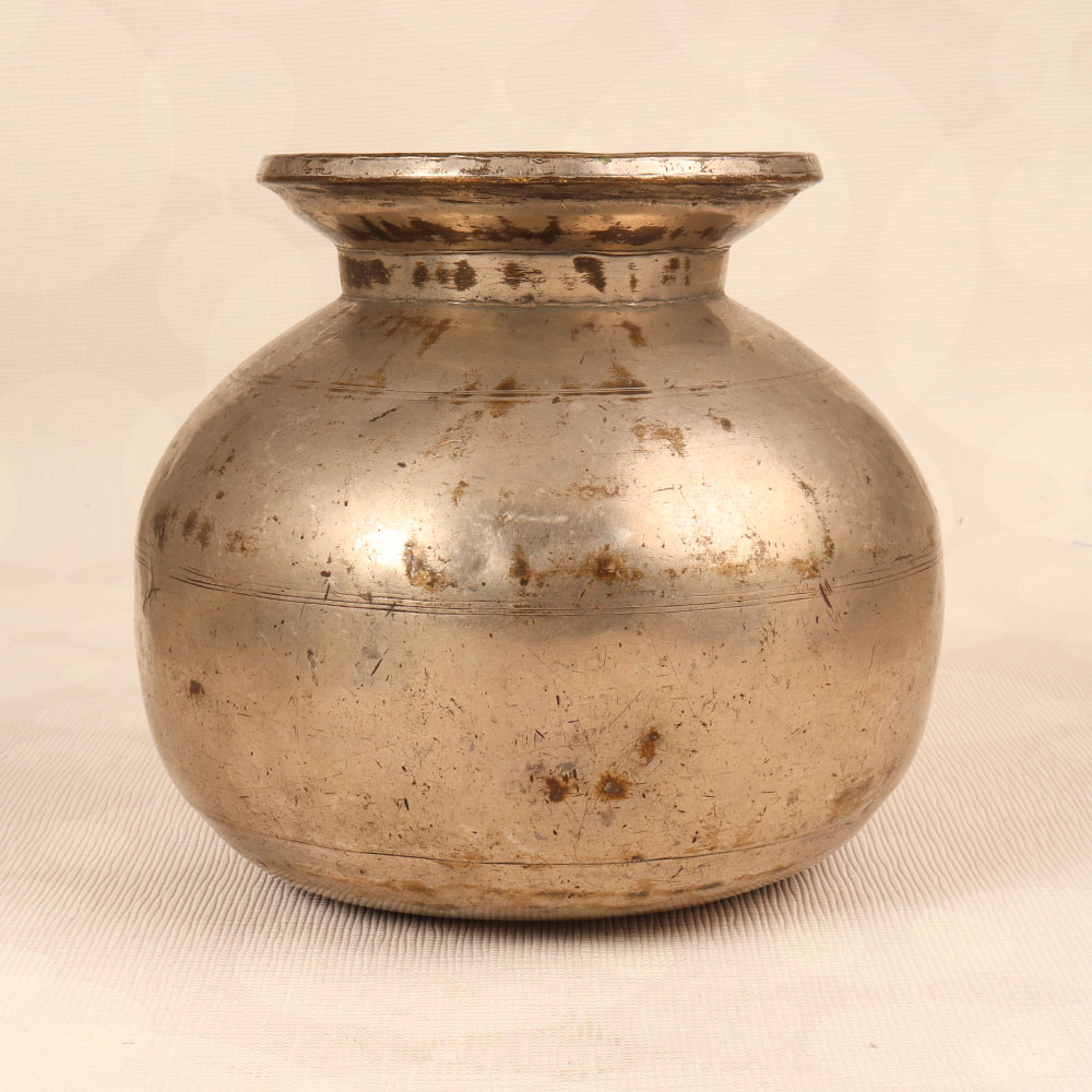 Immerse your surroundings in timeless elegance with our Vintage Brass Holy Water Pot. Handcrafted with precision by highly skilled Indian artisans from Himachal, this lota boasts a captivating antique grey finish that exudes a sense of antiquity. Meticulously fashioned from high-quality brass, the pot not only serves as a symbol of divine purity but also doubles as a versatile decorative piece. This artisanal creation seamlessly blends tradition with functionality, offering a unique touch to any space – be it your home, office, restaurant, hotel, or cafe. Its versatile design allows it to be repurposed as an indoor flower pot, adding a touch of vintage charm to your decor. For spiritual occasions, havans, and rituals, this holy water pot stands as a sacred companion, elevating the ambiance with its sacred presence. As a collector's item, this pot promises to enrich your vintage collection, embodying the cultural richness of Himachal's craftsmanship. Share the joy of divine blessings by gifting this exquisite piece to your family, friends or relatives on special, festive, or auspicious occasions.