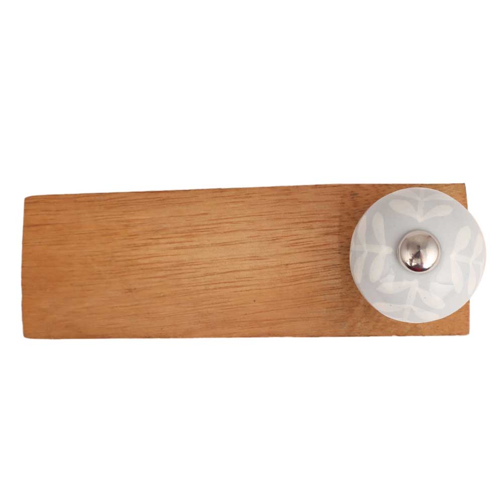 Grey Leaf Ceramic Floral Wooden Door Stopper.Wooden Door Stopper with a Ceramic Knob to Carry it Easily. This Wooden Door Stopper has Glue Dots under it to Ensure that it does not Slip. It is Handmade by the Craftsmen of India and this Innovative Door Stopper won't Disappoint You.