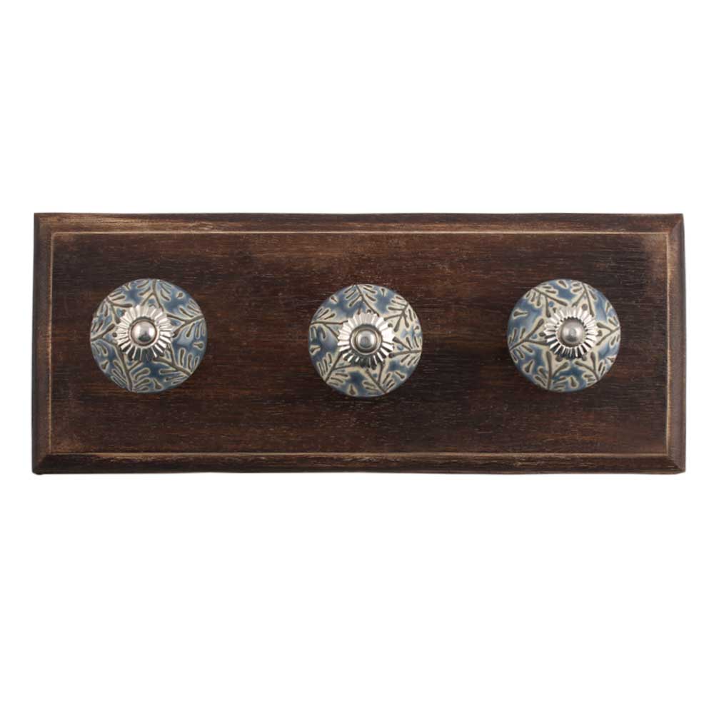 Grey Leaf Ceramic Wooden Hook. A Perfect Complement to the Soft Tone of the Wood are these White Traditional Hat Coat Hook Made of Genuine Porcelain and Brass. It can be use to Hang Jewellery, Leashes, Towels, Scarves, Light Weight Sweaters, Caps Etc.