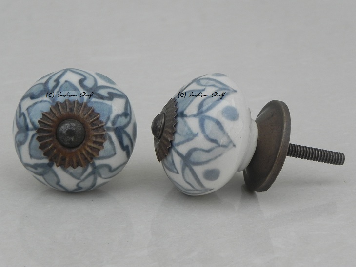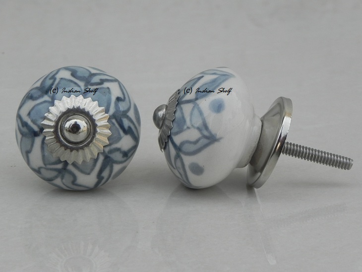 Grey Poinsettia Flower Ceramic Knob. Ideal for kitchen cabinets, kitchen drawers, dining room, bed room, chest drawers, dressing tables, almirah
