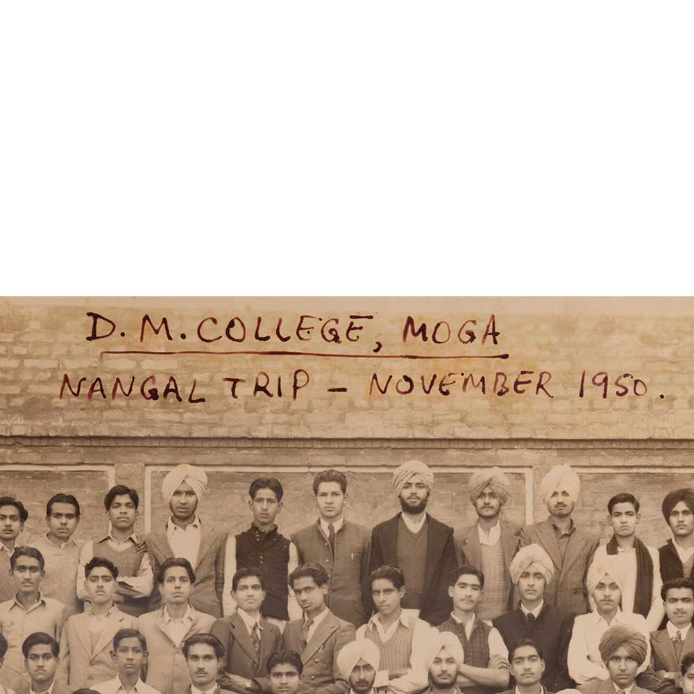 - Depicts a group in front of a building, likely students and faculty at D.M. College in Moga