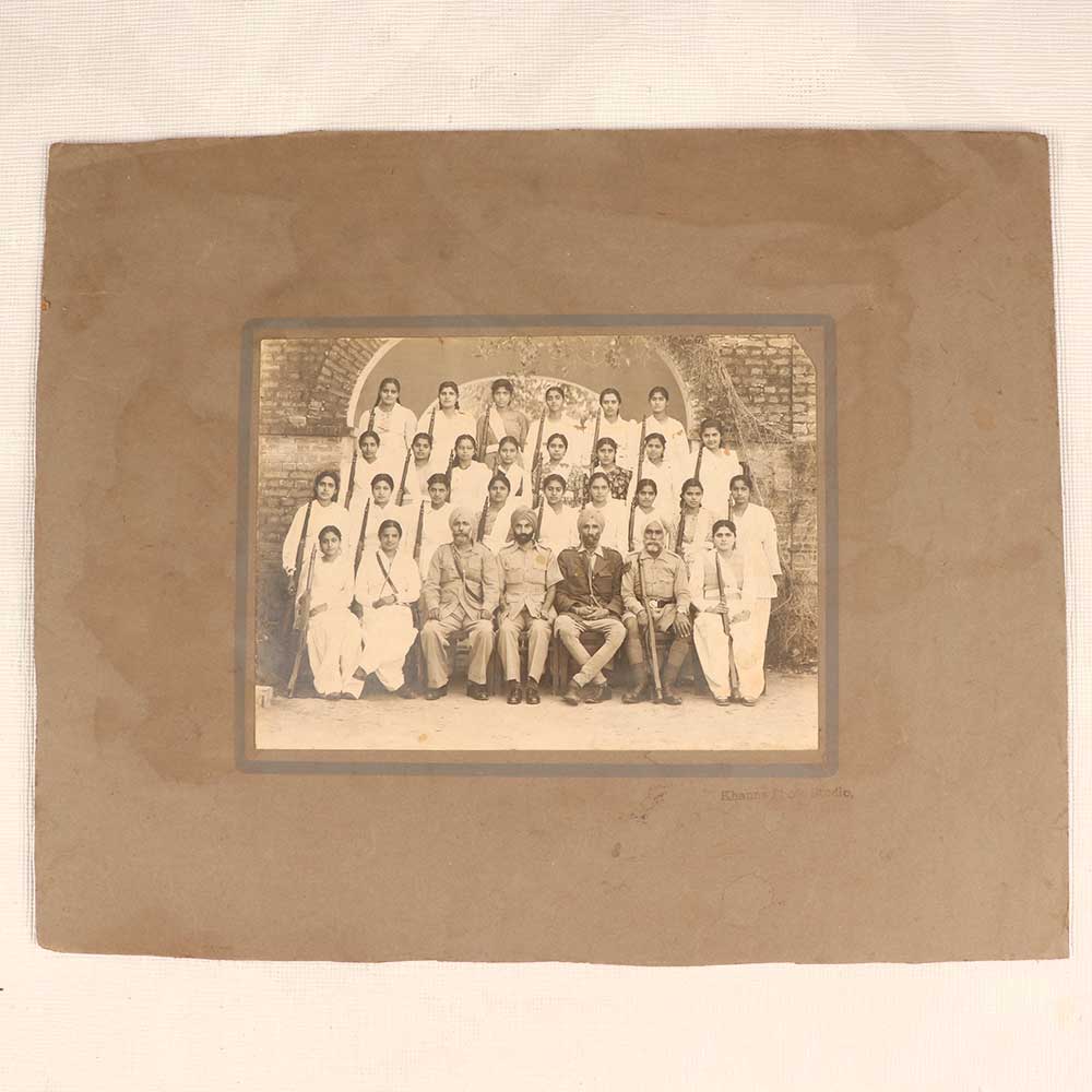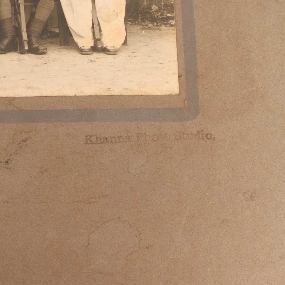 Turn back the clock and step into the past with this mesmerizing vintage paper photograph. Captured decades ago at the renowned Khanna Photo Studio, this black-and-white group portrait transports you to a bygone era. This snapshot offers a portal to the styles and faces of the past. Marvel at the elegant fashions and poised postures characteristic of the time period. Study the expressive faces, wondering about the lives and stories of these figures frozen in time. With its rich historical aesthetic, this photograph makes a meaningful decorative accent and conversation piece. Ideal for history buffs, vintage photography collectors, and anyone who wants to be immersed in the visuals and mood of another age. This antique image adds timeless character to any wall or shelf.