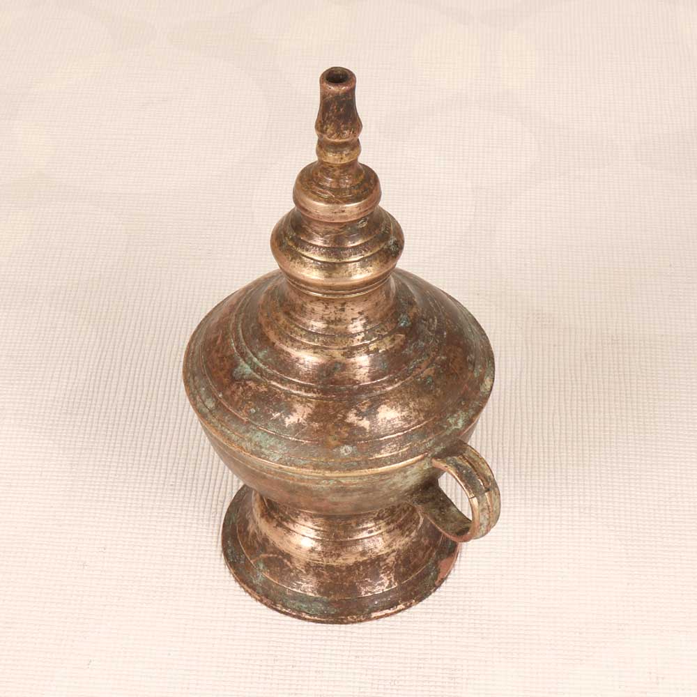 Experience the enchanting glow of antique charm with this brass oil lamp handmade by skilled artisans in Gujarat, India. Beautifully engraved with motifs, this lamp adds a touch of vintage elegance to any space. As the sun sets, light the cotton wick and let the soft flicker of the mustard oil flame transport you back to quiet evenings long ago. Place this heritage lamp on your entryway table, bookshelf or mantel to infuse your home with old-world allure. Give the gift of handmade artistry with this brass lamp, crafted using the same time-honored techniques passed down for generations. A memorable way to celebrate special occasions and traditions. Let its warm, welcoming glow be a gathering place for creating new memories.