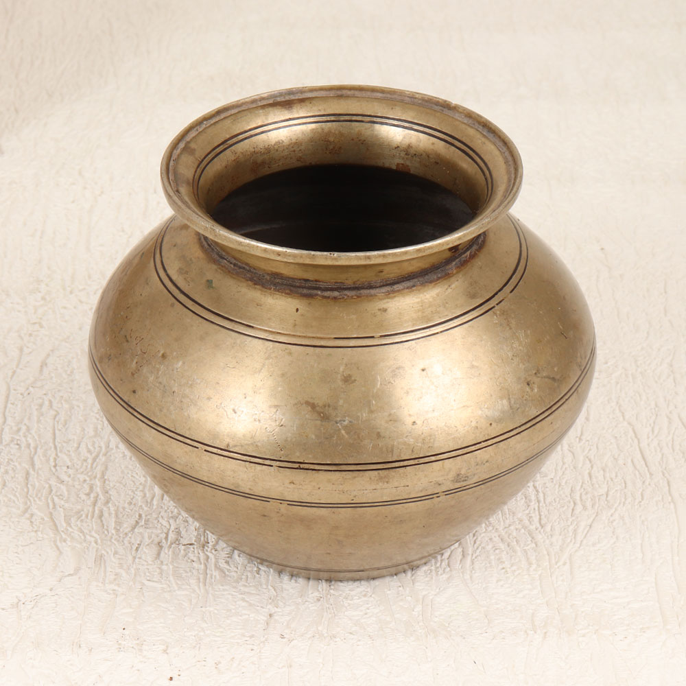 Step back in time with this vintage brass holy water pot from India. With its minimalist form and earthy patina, this vessel creates an oasis of spirituality wherever it rests. Let this brass pot impart a whisper of ancient wisdom. Its vintage finish and modest shape carry the presence of rituals passed down through generations. Place it on your meditation altar to hold holy water, dried roses, healing gems, or any sacred elements that speak to your soul. When life feels chaotic, let this calming vessel be your still point - a place to center your spirit. Seekers, devotees, spiritual explorers - make this brass pot a staple of your practice. Sit with it in quiet contemplation as you reflect on what matters most. Use it to create a soothing ambiance for prayer, meditation, or ritual. However, it graces your space, let this humble pot be your timeless connection to the sacred.