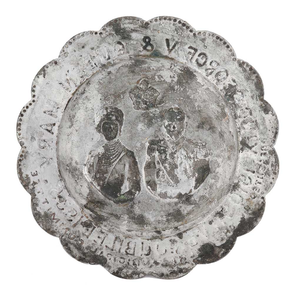 Vintage Embossed Plate or Wall Hanging Featuring English Pub Scene. Hand Hammered or Embossed Bronze Serving Tray or Plate with king George and queen Mary dated 1910 Silver Jubilee Plate. Wedding gift, Anniversary gift, House warming gift for your friends and family.