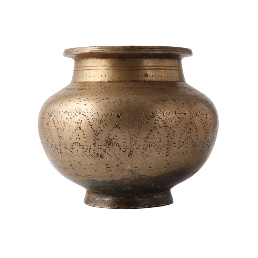 This ornate brass pot, commonly referred to as a kalash, is appropriate for gift-giving. It enhances the interior design and gives the house a feeling of security and quiet. Use this at home or in the office with no problems. a sizable professional and private collection.