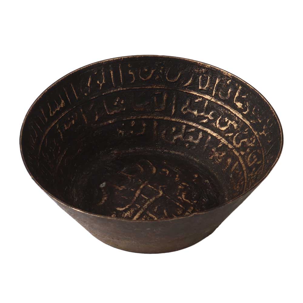 Islamic Brass Bowl Kattori, an old brass kitchen tool with hand carvings in Urdu. Daily Utility Kitchen Bowl,  Can Also Be Used As Daily Part Of Life Was Previously Used By Women In Indian Kitchens. Excellent Piece for Use! Beautiful décor and unique gifts. A lovely work of art with a lovely decorative shape. Prepared To Join Your Collection. Treat for fans of vintage art.