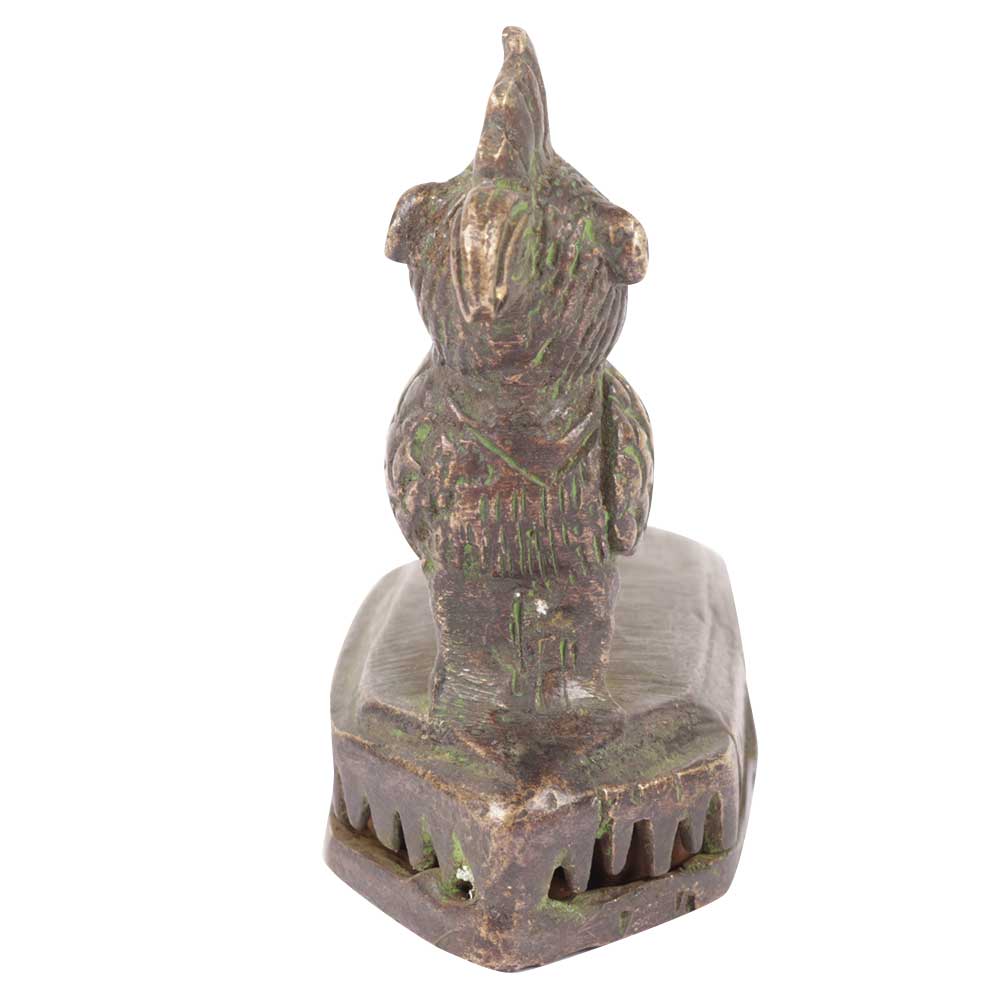 Old Vintage North India Brass Hand Carved Peacock Jali Cut Feet Cleaner Scrub for Collection with a Tribal Handmade Peacock the National Bird of India Fixed Atop a Brass Scrubber.