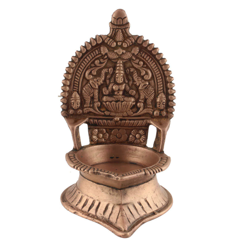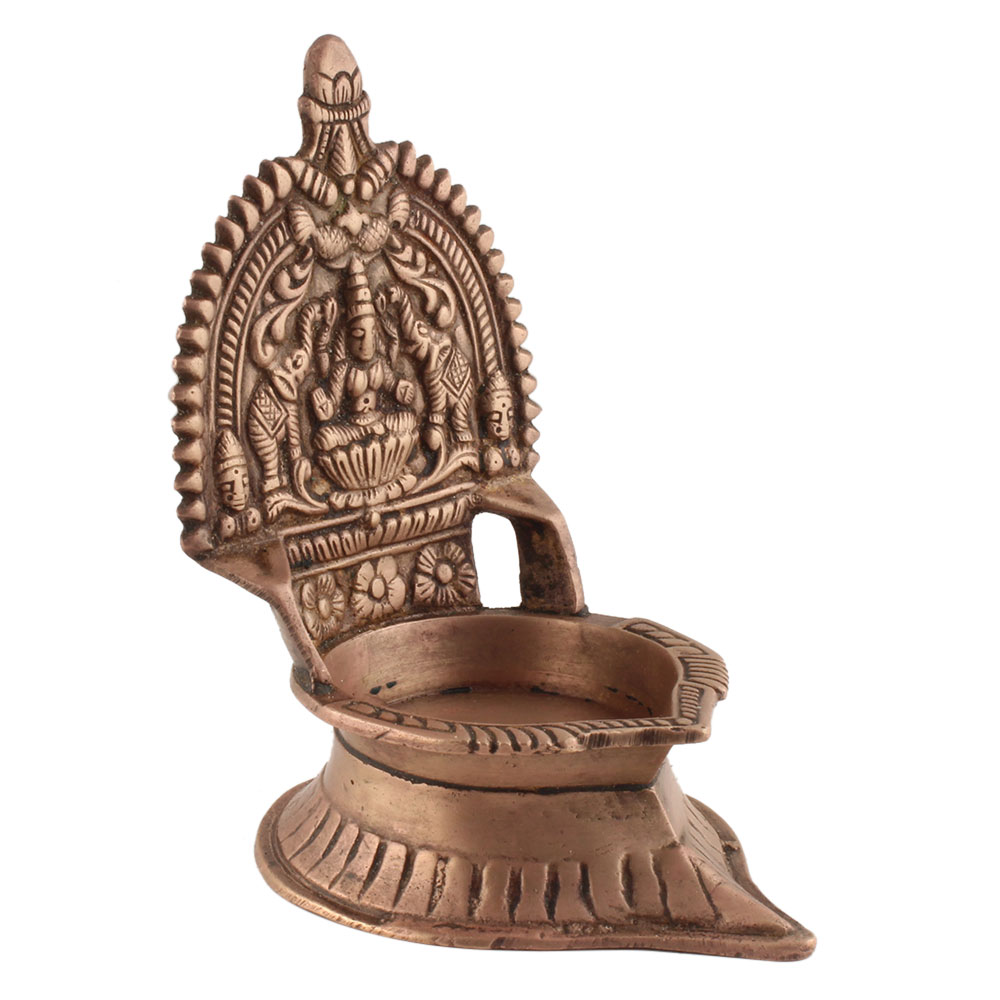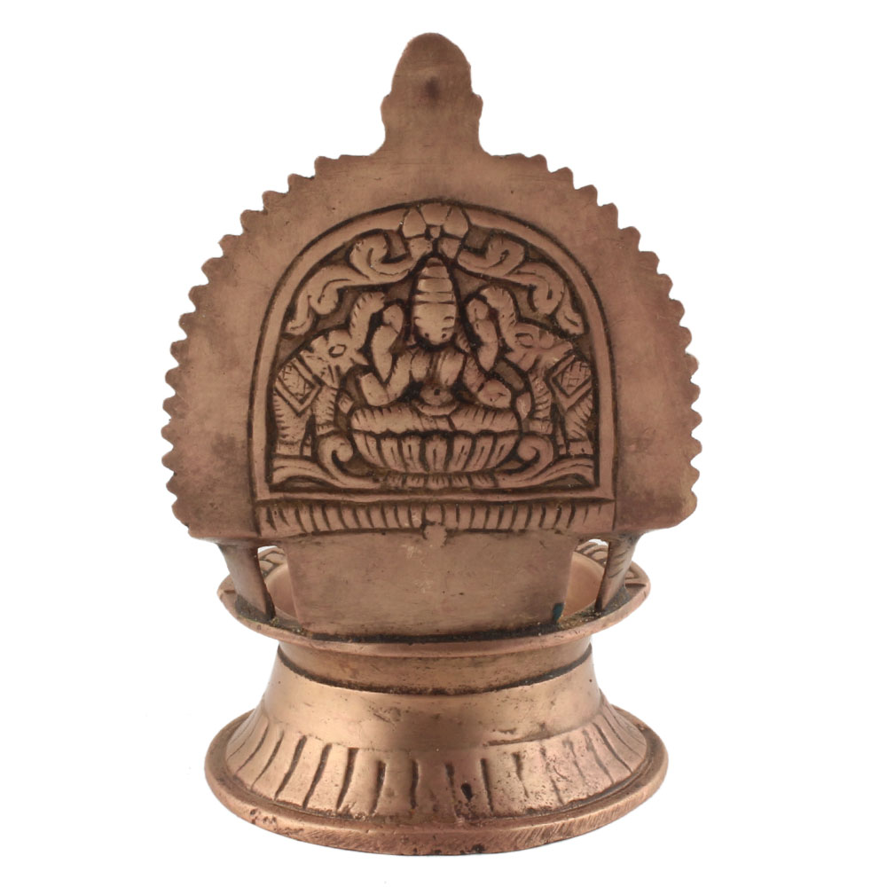 Traditional South Indian Ashtadhatu Oil lamp made using the traditional lost wax process has a deep cup to fill oil or ghee . The lamp is unique in shape with a small bird figurine on one end of the lamp . It also has nice engraved design on the border of the lamp .It is generally used during Diwali or other auspicious occasions.