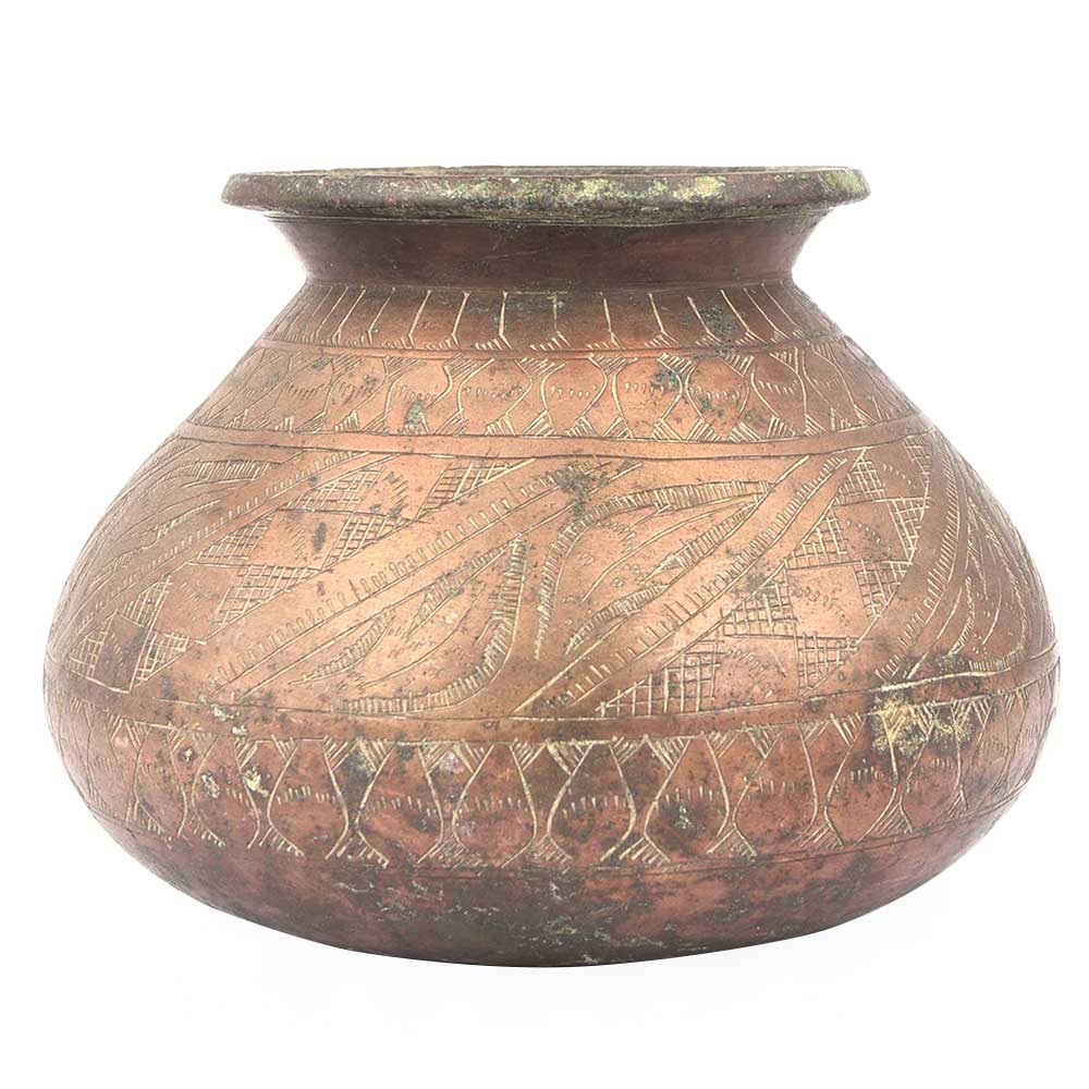 Old Flower Carved Brass Water Pot Vintage Shape Ganga Jal Kalash Lota.