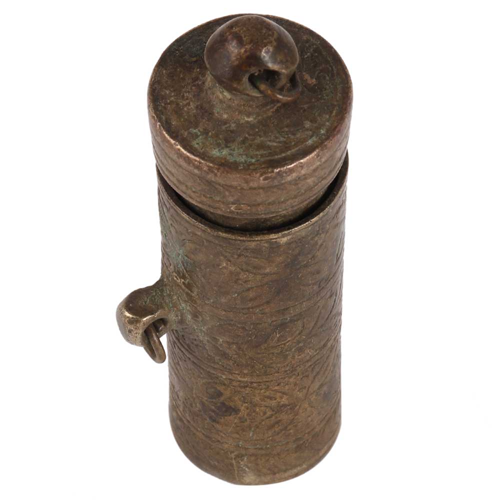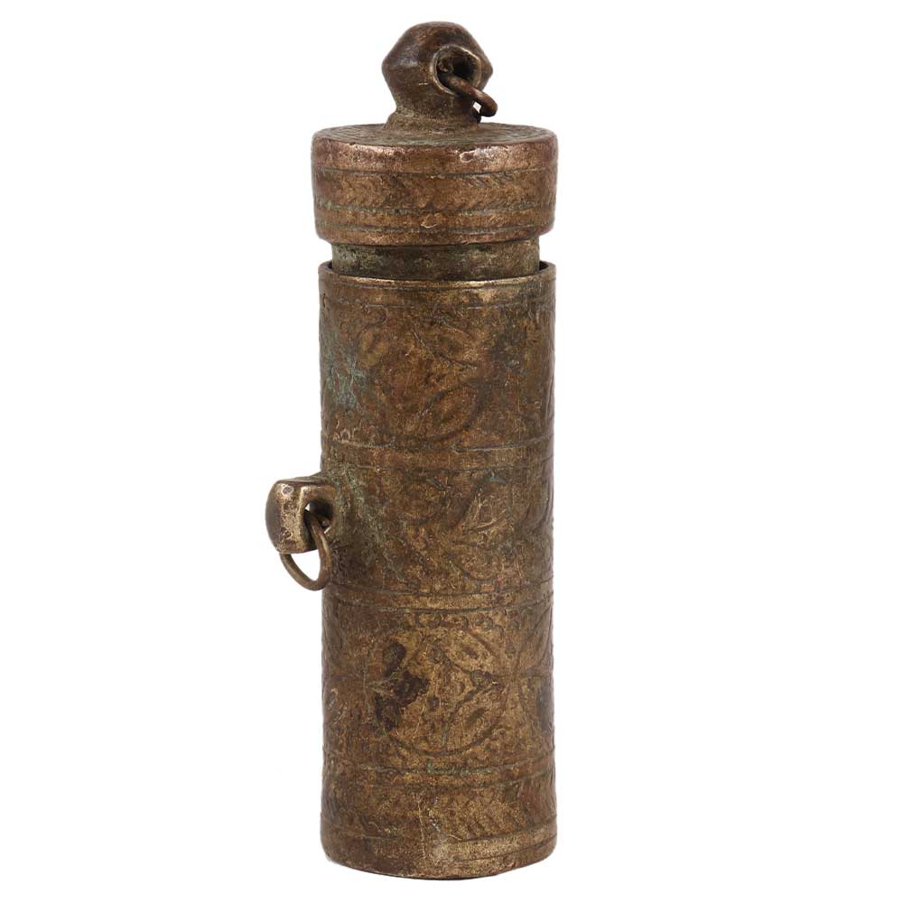 Old brass chuna dani or lime paste container, handcrafted by indian artisans using traditional design and methods. Eating pan is an ancient Indian tradition in which lime paste is applied to betel laves to produce a slight intoxicated sensation. Give it to your family members and friends.