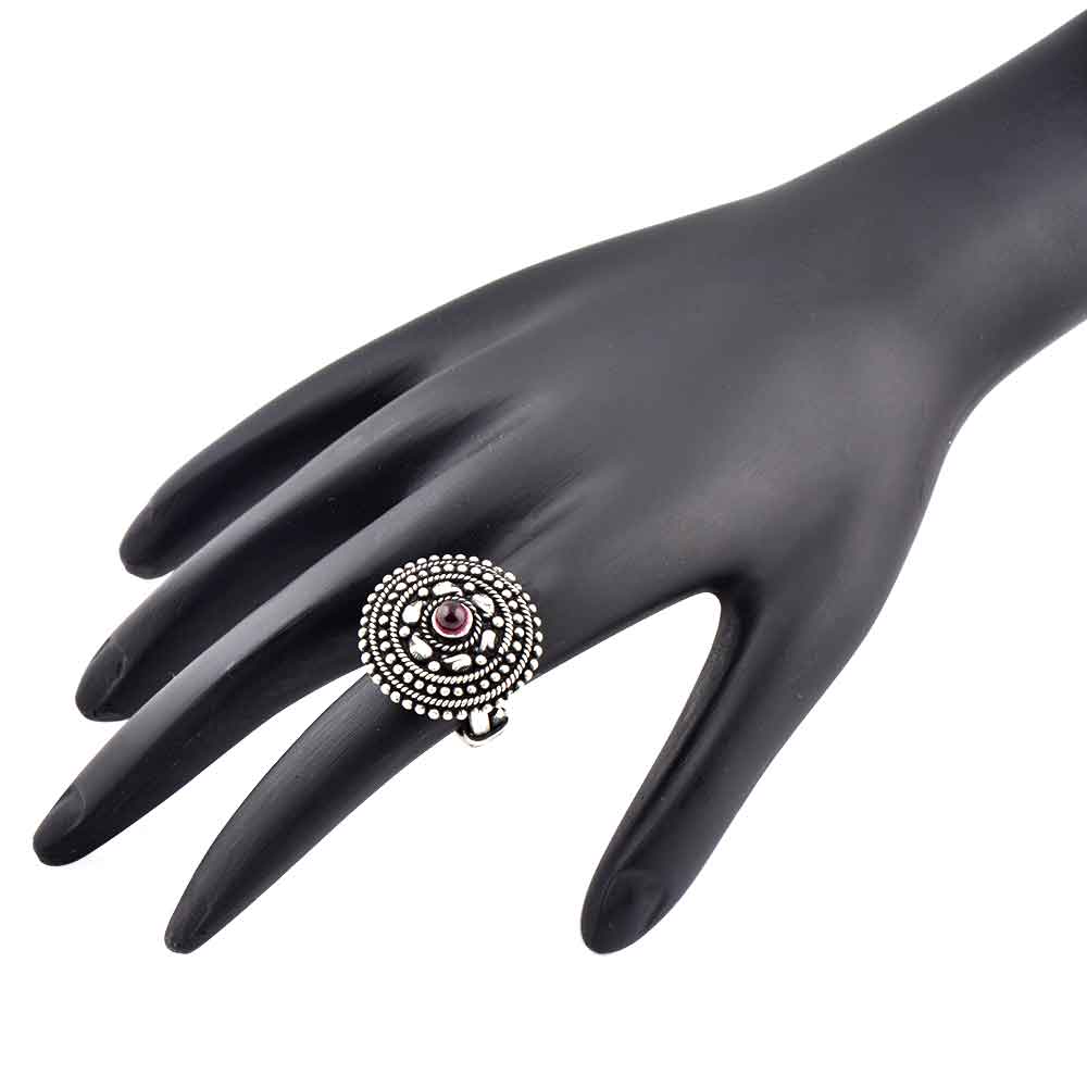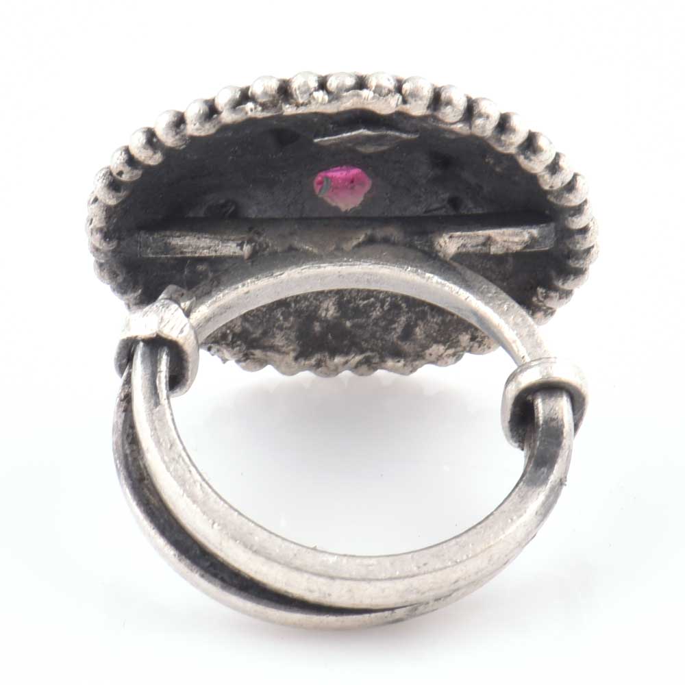 A very ethic design of 92.5 sterling silver ring to add a royal touch to traditional wear during weddings, engagements, meetings, seminars and other important social functions. Suited For girls and women of all age and group as it can be adjusted accordingly.