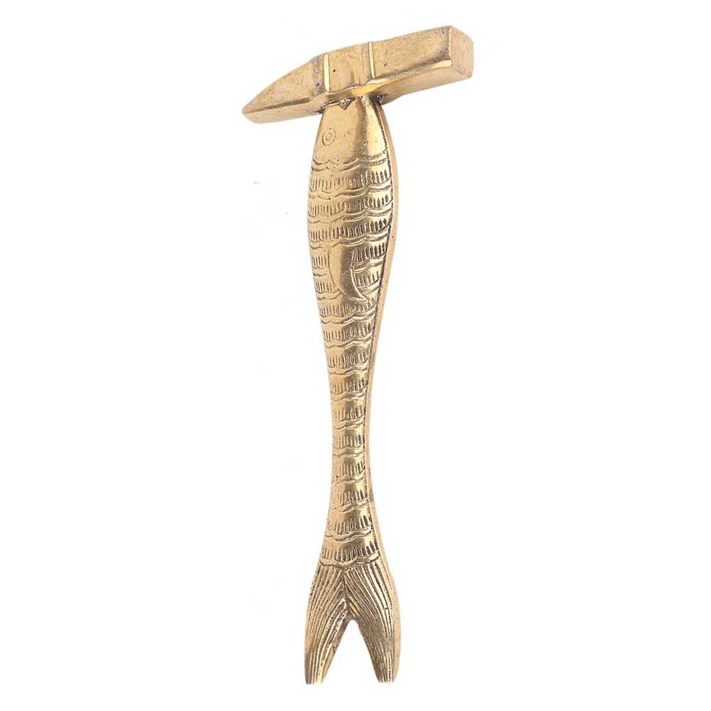 Hand crafted brass carved fish with hammer design on top for table decoration, home decoration , Study table decoration , house warming gift, diwali gift . The paper weight is heavy and serves its purpose with fine detailing and lovely golden color.