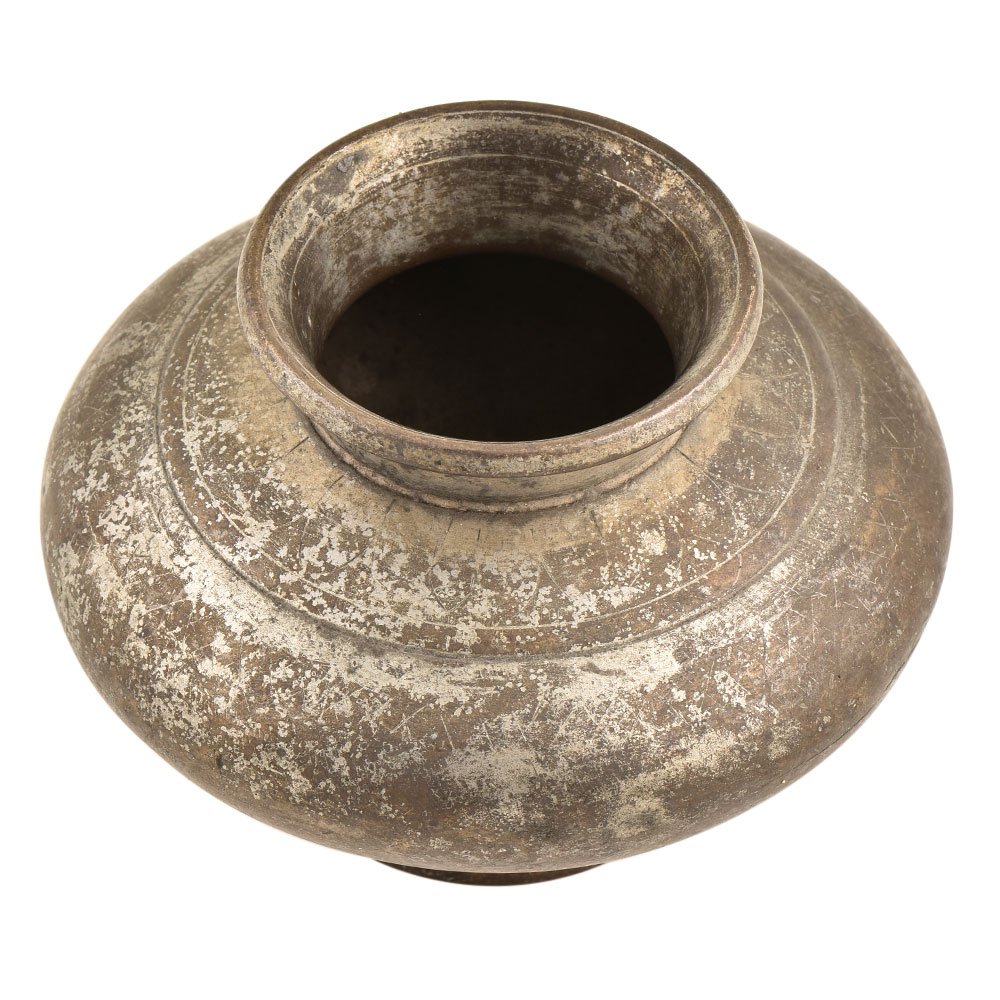 The hand crafted water pot has a wonderful shape with a bottom rim for support, a large belly to hold water a small neck and mouth on the top of the neck to receive water. It a visual interest at home with this vintage piece. This is an attractive addition to your old, wooden dining table or as a showpiece on the corner shelf.