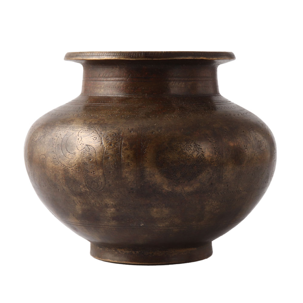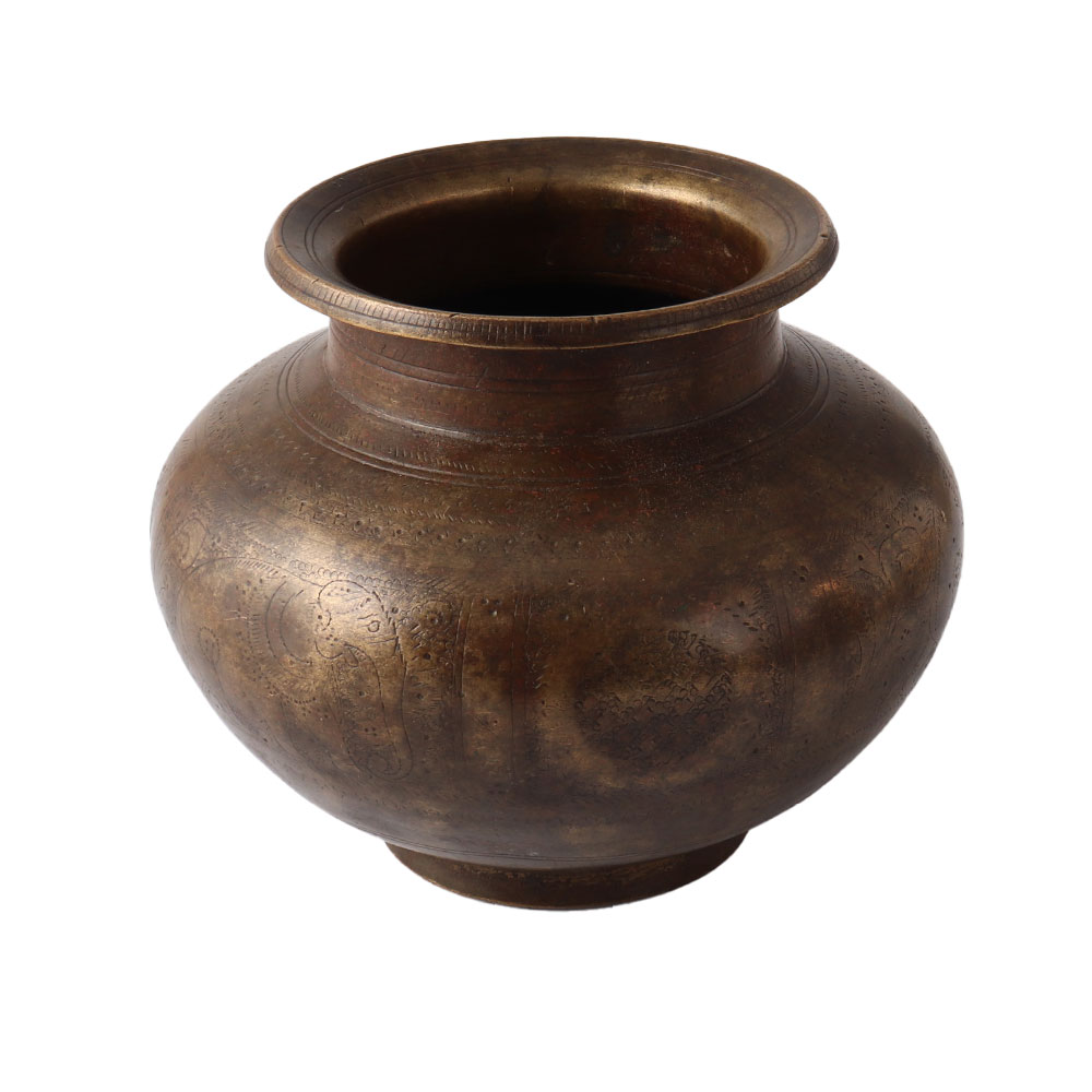 This used brass pot is beautifully decorated  and utilised in Hindu culture for prayers to the gods. It will add attractiveness to your pooja room, house, business, etc. because it is manufactured of the highest grade Brass. The product is individually created and has Handcraft Details embossed on it. It might be a wonderful religious present idea for your family members or friends. You can create it or select it as the ideal gift option for each occasion of a Hindu religious event.