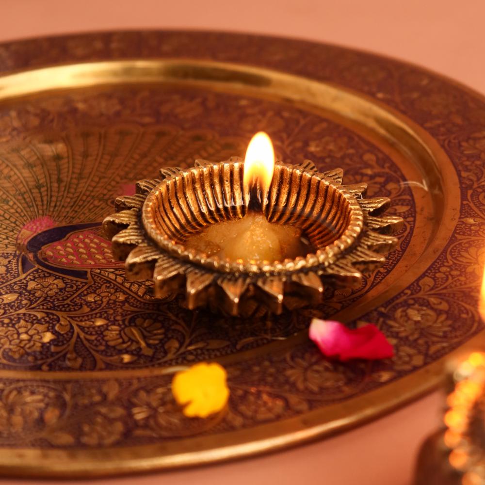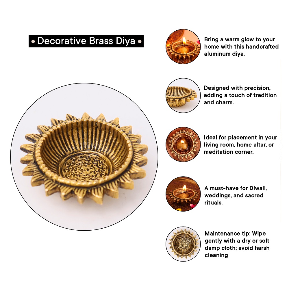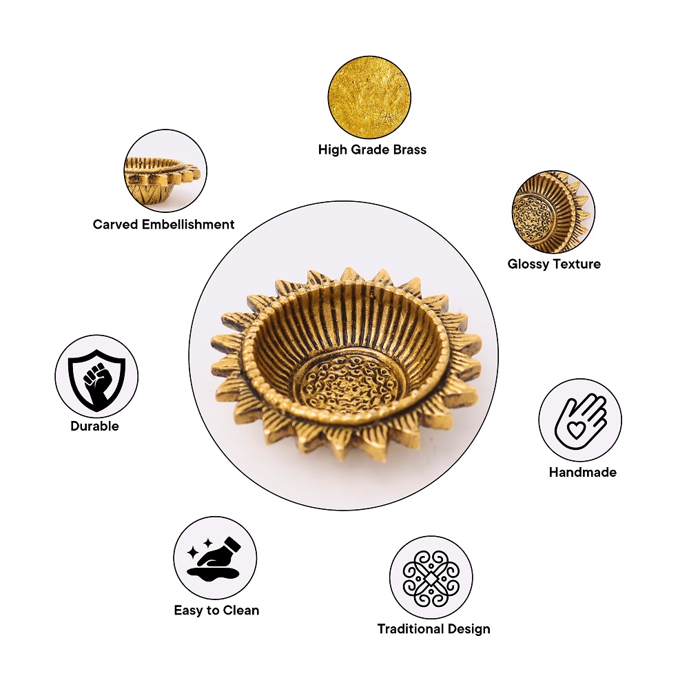 Elegant Brass Diya – Radiant Sunflower Design for Mandir and Festive Decoration