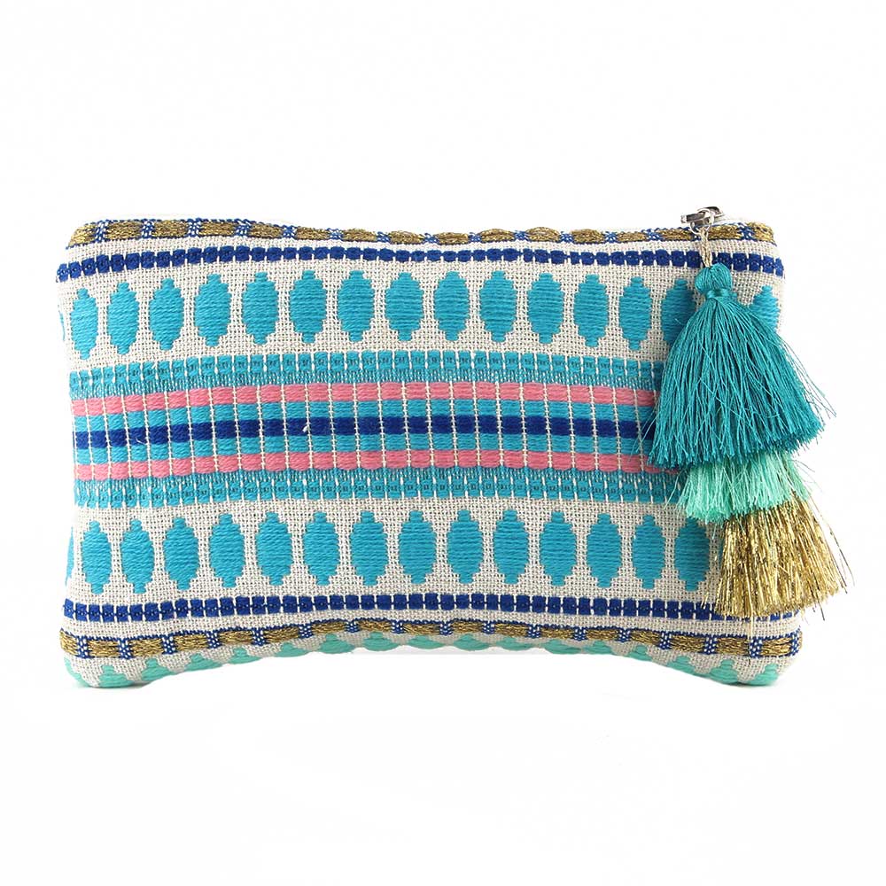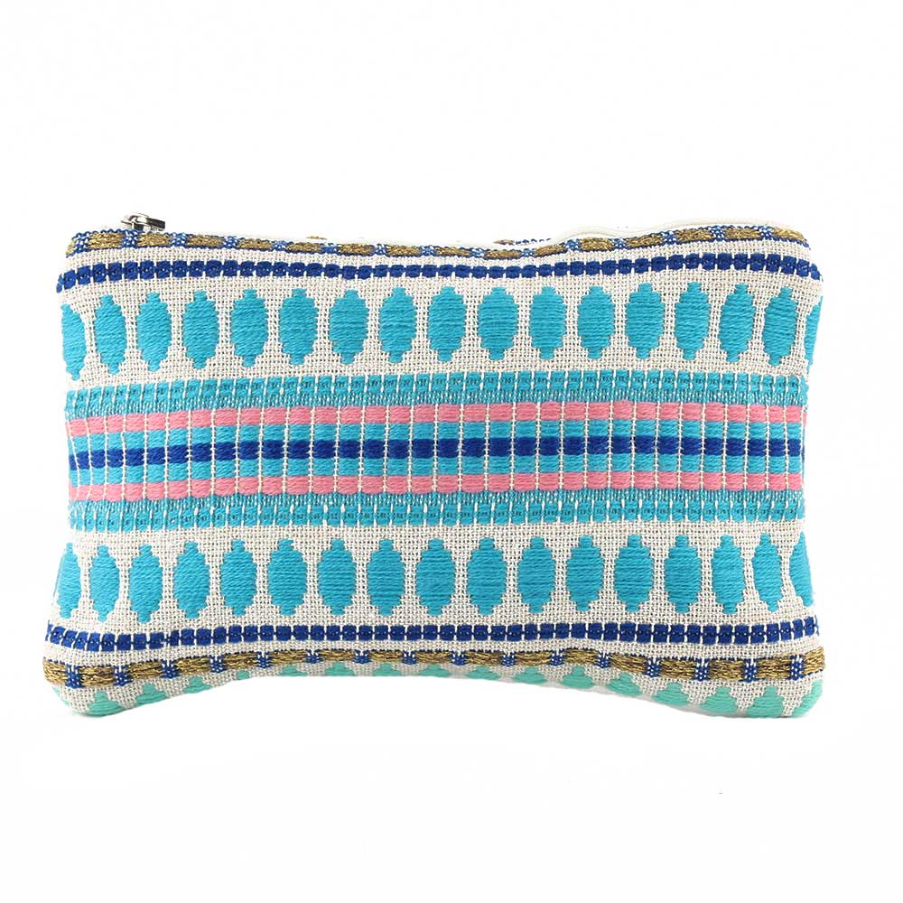 This had emboidered bue clutch bag ,wallet ,make-up bag is exactly the right size to accommodate your essentials on the move; this basic and utilitarian bag is big enough to fit your credit cards, cash, coins, and lip gloss.