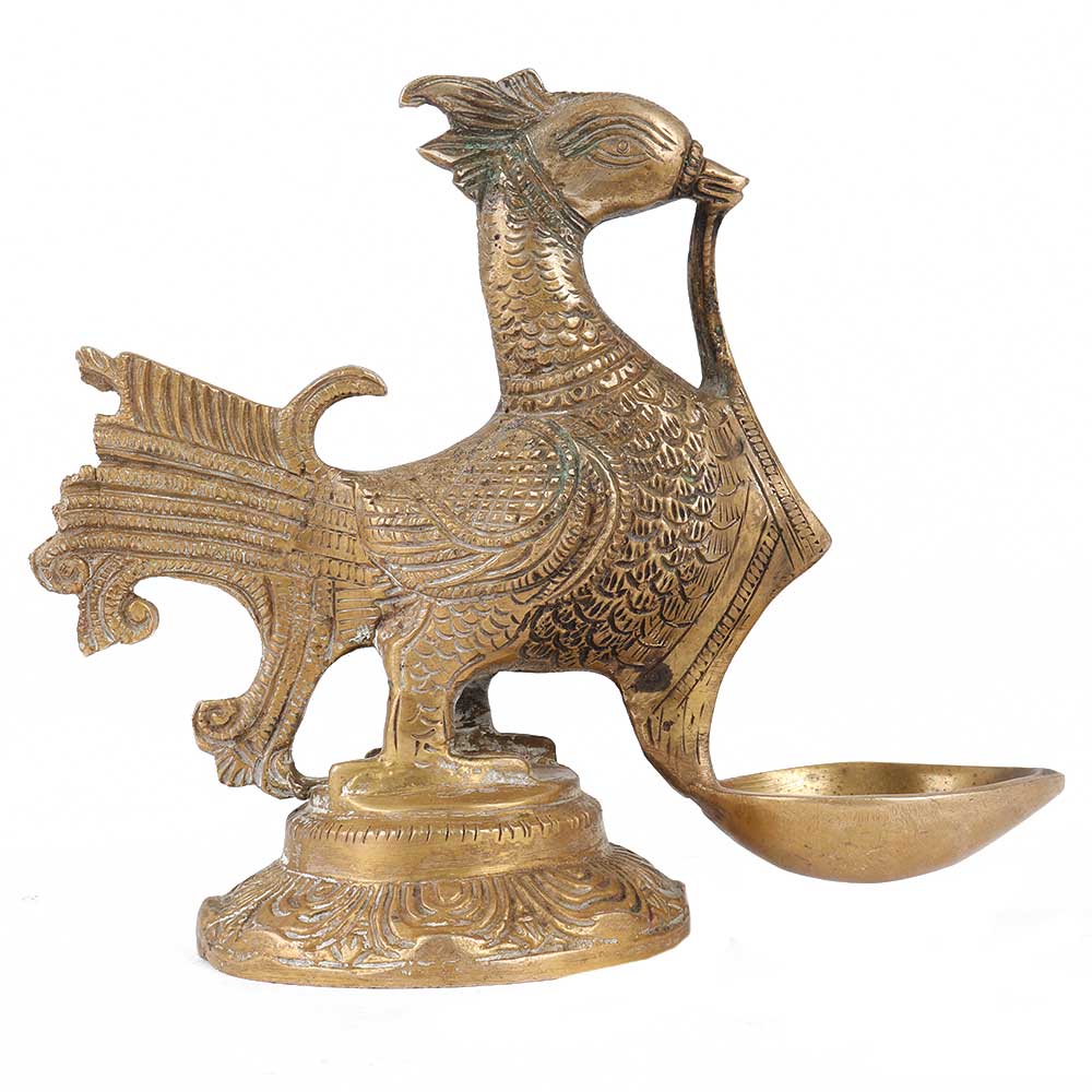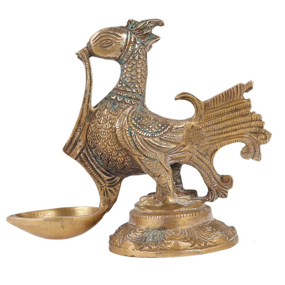 This stunning parrot deepam or oil lamp, created of high quality brass by talented artisans, will dispel the darkness and fill your home with light. The parrot is exquisitely carved, perfectly capturing the aura of grandeur and beauty. It can be used as a christmas decoration or a collector showpiece for the home.