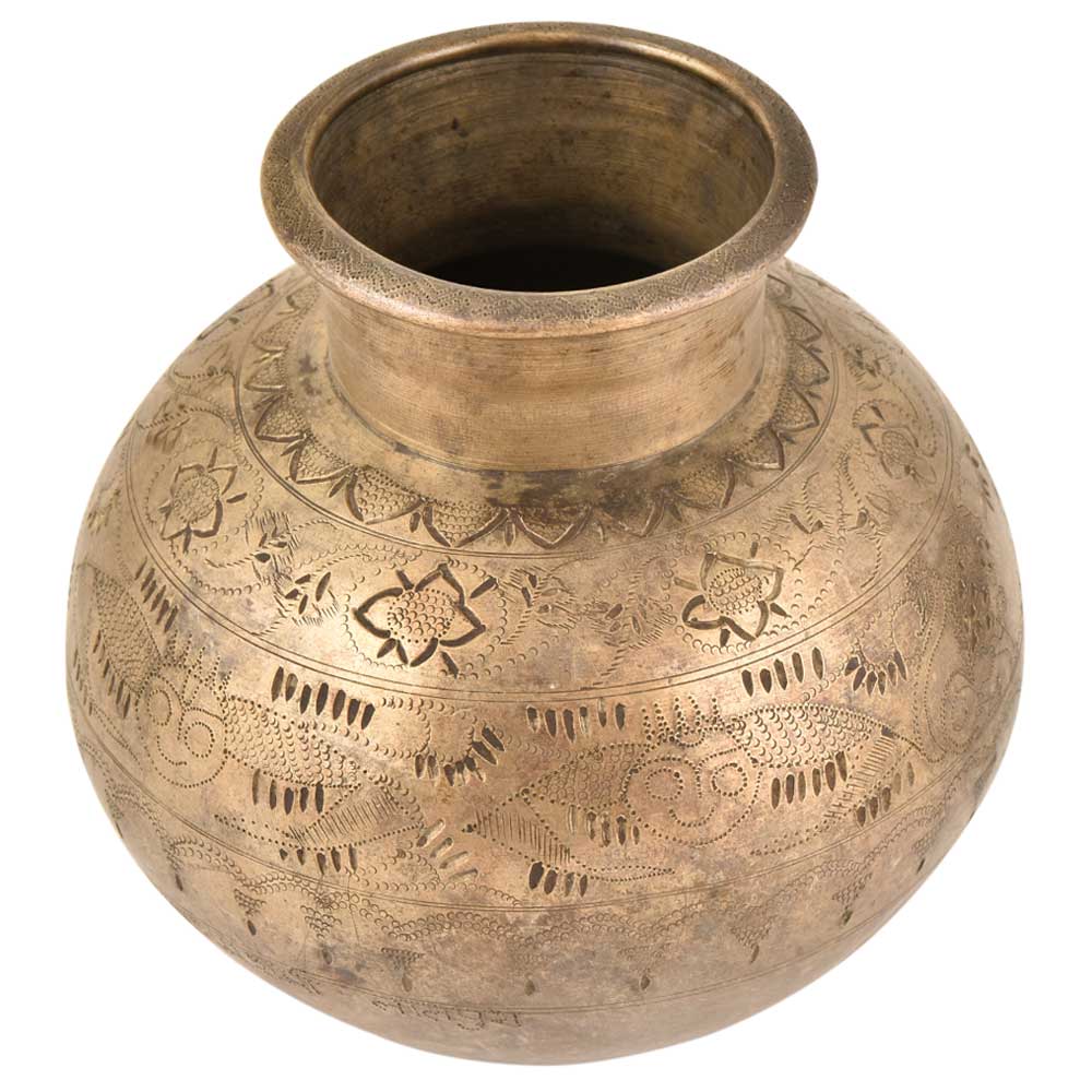 This handmade holy water pot was used to store holy water and sprinkled in the entire house or temples or other places of worship and the left over water was then poured in the basil plant to raise or enrich itself. Crafted from excellent quality metal these water Lota Pots are made by expert artisans and have delicate engraving all around the vessel.