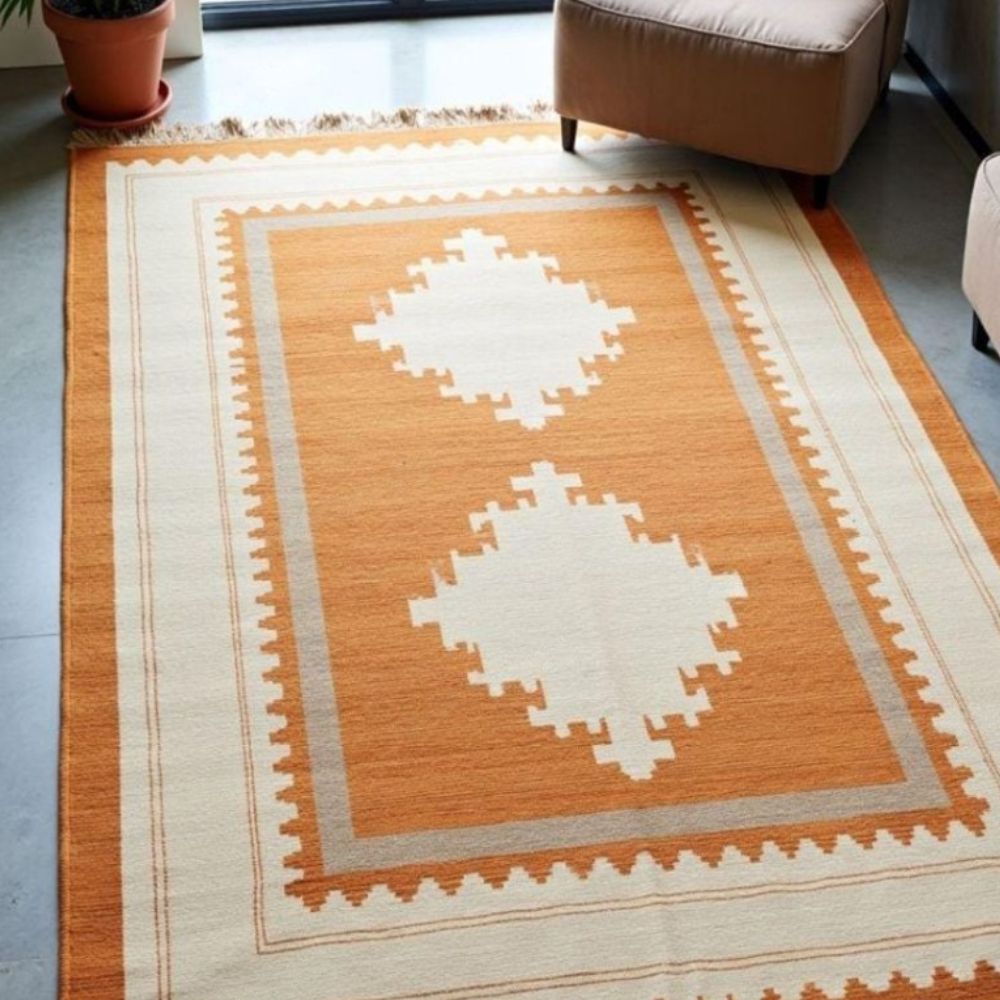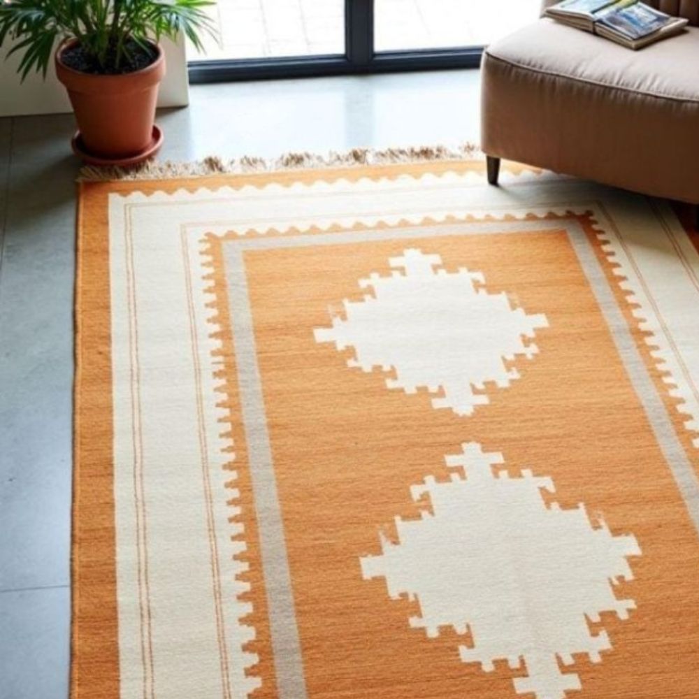 The striking geometric diamond motifs and intricate border pattern make this rug a perfect statement piece, while the hand-tied fringe adds a traditional finishing touch. Woven from 100% premium wool, this rug offers exceptional softness, natural stain resistance, and long-lasting durability. The hand-knotted technique ensures each piece is unique, with a rich texture that feels luxurious underfoot. Its warm, earthy tones pair beautifully with modern, bohemian, farmhouse, or eclectic interiors. Perfect for living rooms, bedrooms, dining spaces, and reading nooks, this rug brings both comfort and character to your space. Key Features: Material: 100% Hand Knotted Wool Design: Southwestern Geometric with Diamond Motifs Colors: Orange, Ivory, and Soft Beige Durable & Long-Lasting: Built for everyday use Comfortable: Soft underfoot and naturally insulating Fringe Detailing: Adds traditional charm Versatile: Complements modern, rustic, bohemian, and farmhouse styles Why Youll Love It: This rug combines the authenticity of traditional weaving with a fresh, warm color palette, making it a standout addition to any home dcor. As it Appears Pack of One Piece.