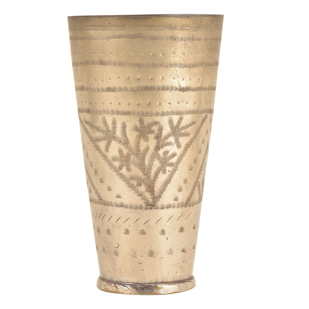 Hand Etched Vintage Looking old lassi glass or cup that is a trademark of north regions of Punjab and Rajasthan make wonderful vases or beakers to store paint brushes or kitchen utensils they are sturdy heavy and unique and is great for home décor and personal gifting. Great for Vintage Lovers Truly Collectors Piece