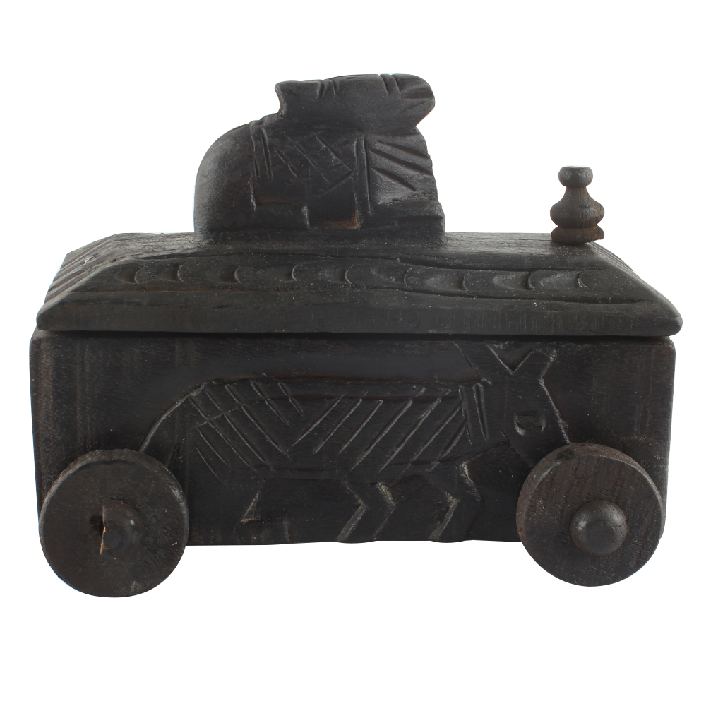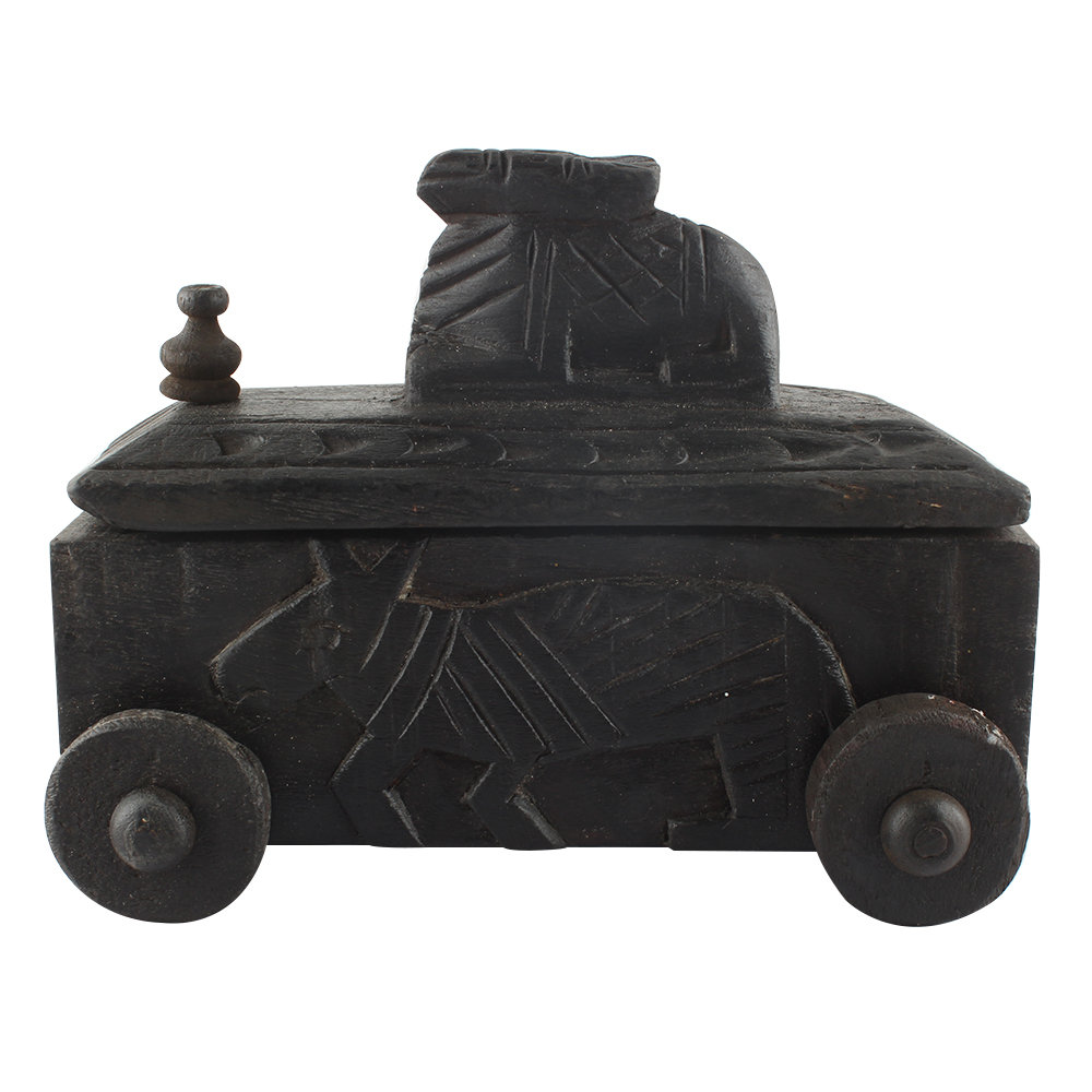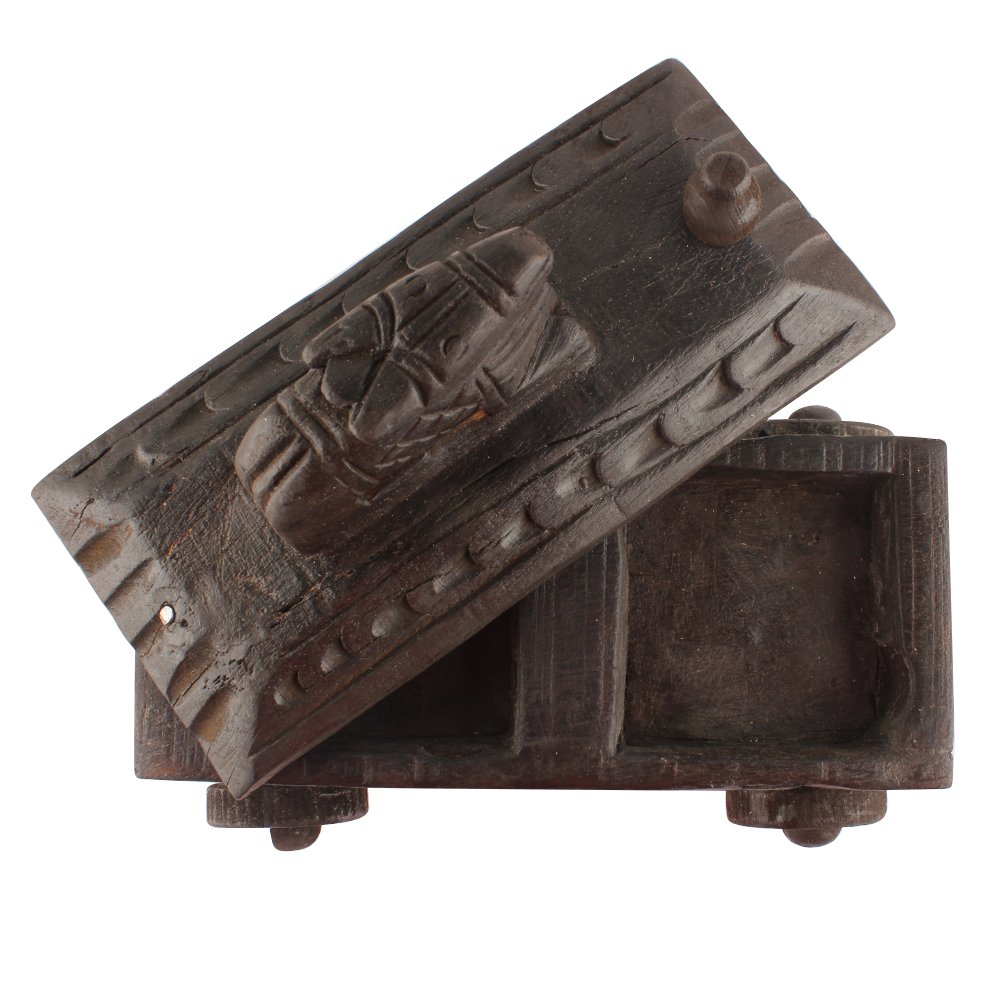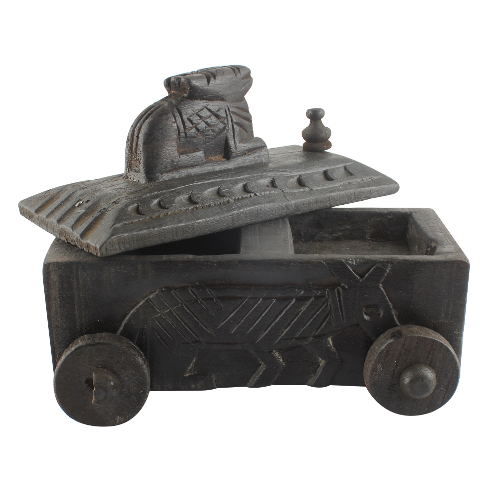 Hand Made Old Decorative Nandi Wooden Box. Ceramic Drawers in Wooden Frame. The Spice Boxes are designed with different patterns. These boxes are made using natural wood which does not harm the purity of spices.