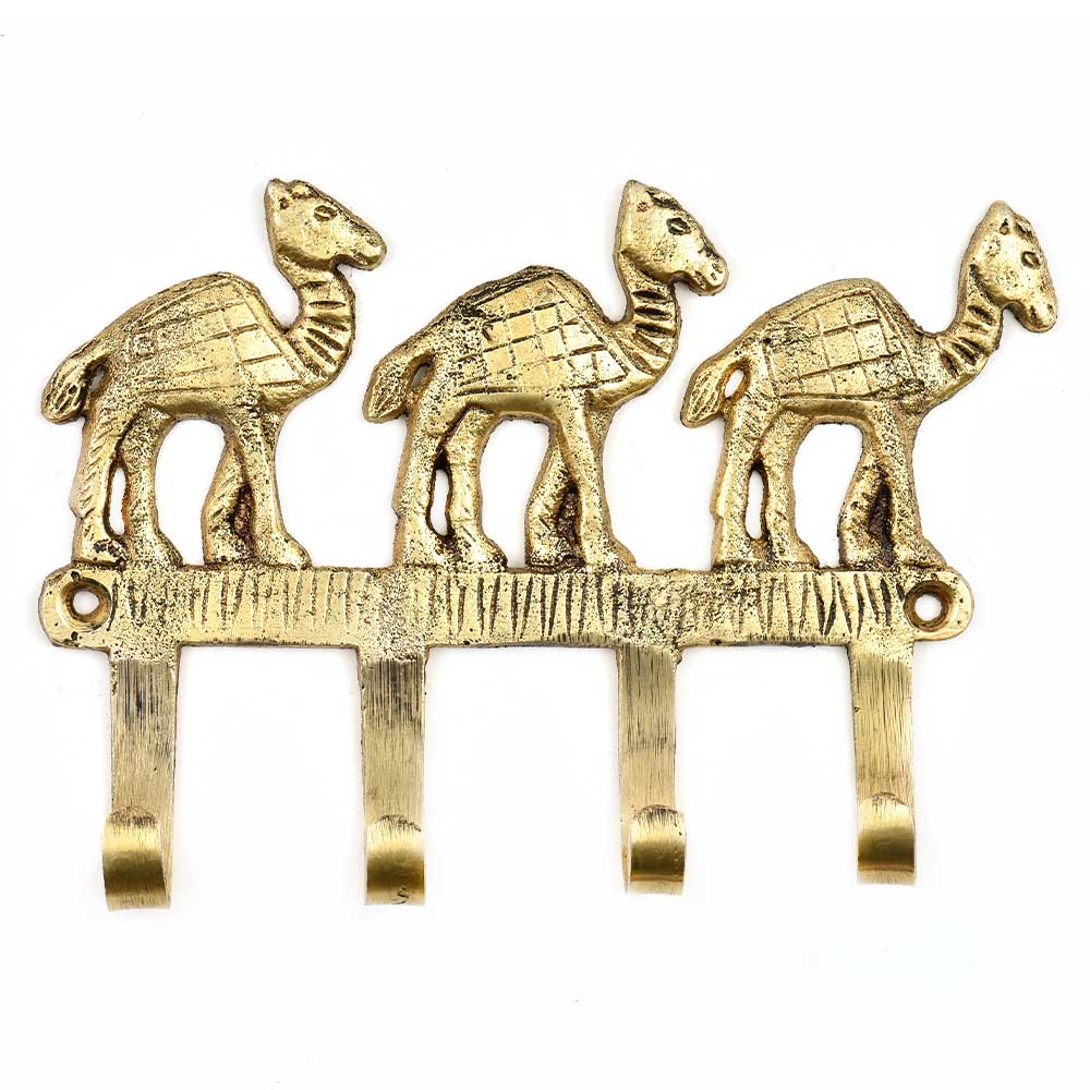 Brass Patina Key Hook Holder Camel Design Wall Mount Key Hanger Shape of Three Camel in a line Looks Very Beautiful on Wall Home Kitchen Decor, Gift for Christmas or Birthday to Your Loved Ones.