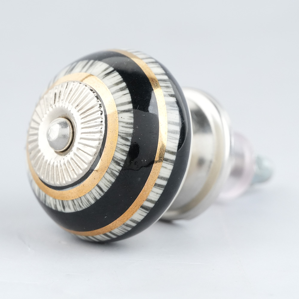 The Hand-Painted Black Design Ceramic Knob features a captivating black pattern on a sleek ceramic surface. The meticulous hand-painted design adds a touch of elegance and artistry to your furniture, ensuring it stands out in any setting.