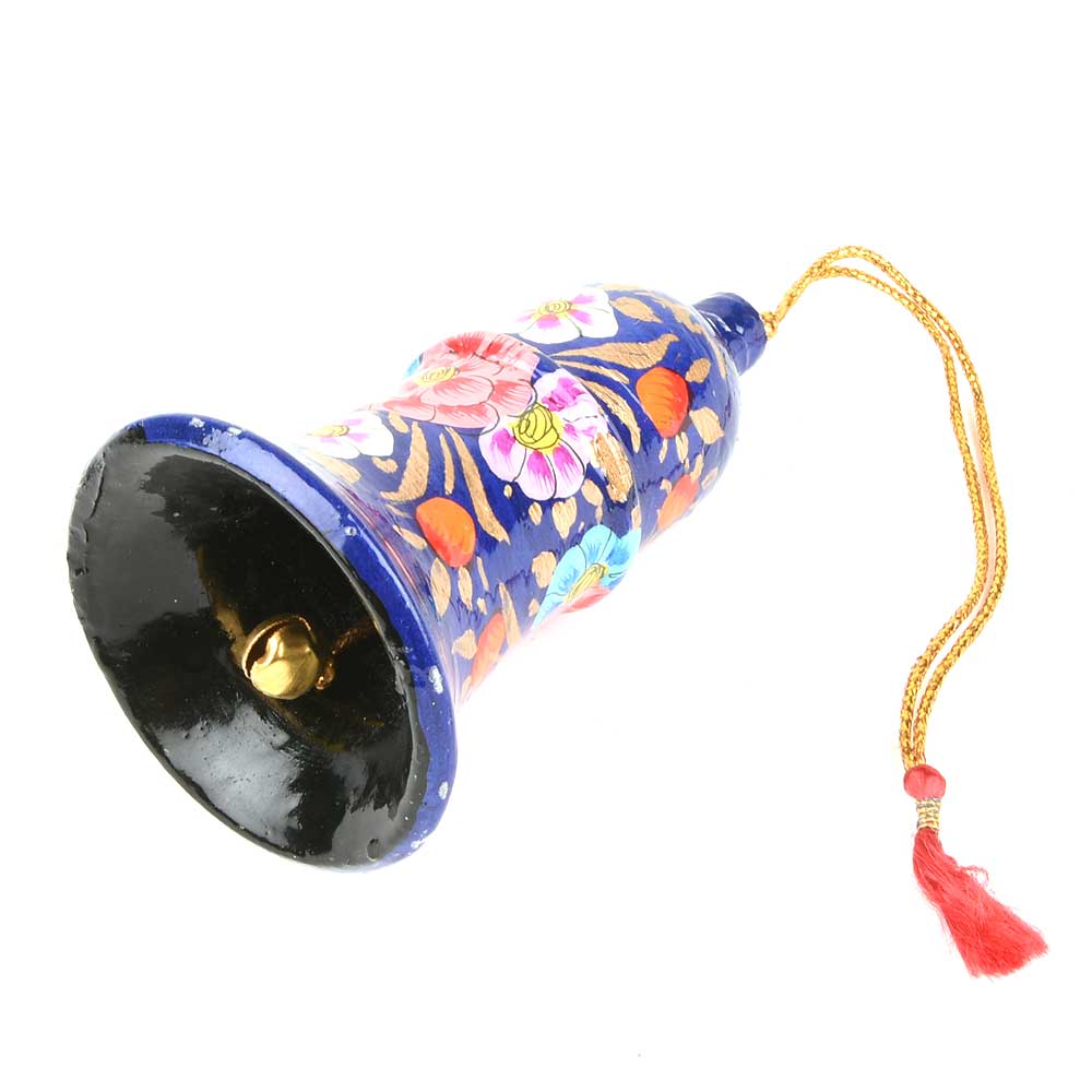 Hand Painted Blue Floral Paper Mache Bell Ornament