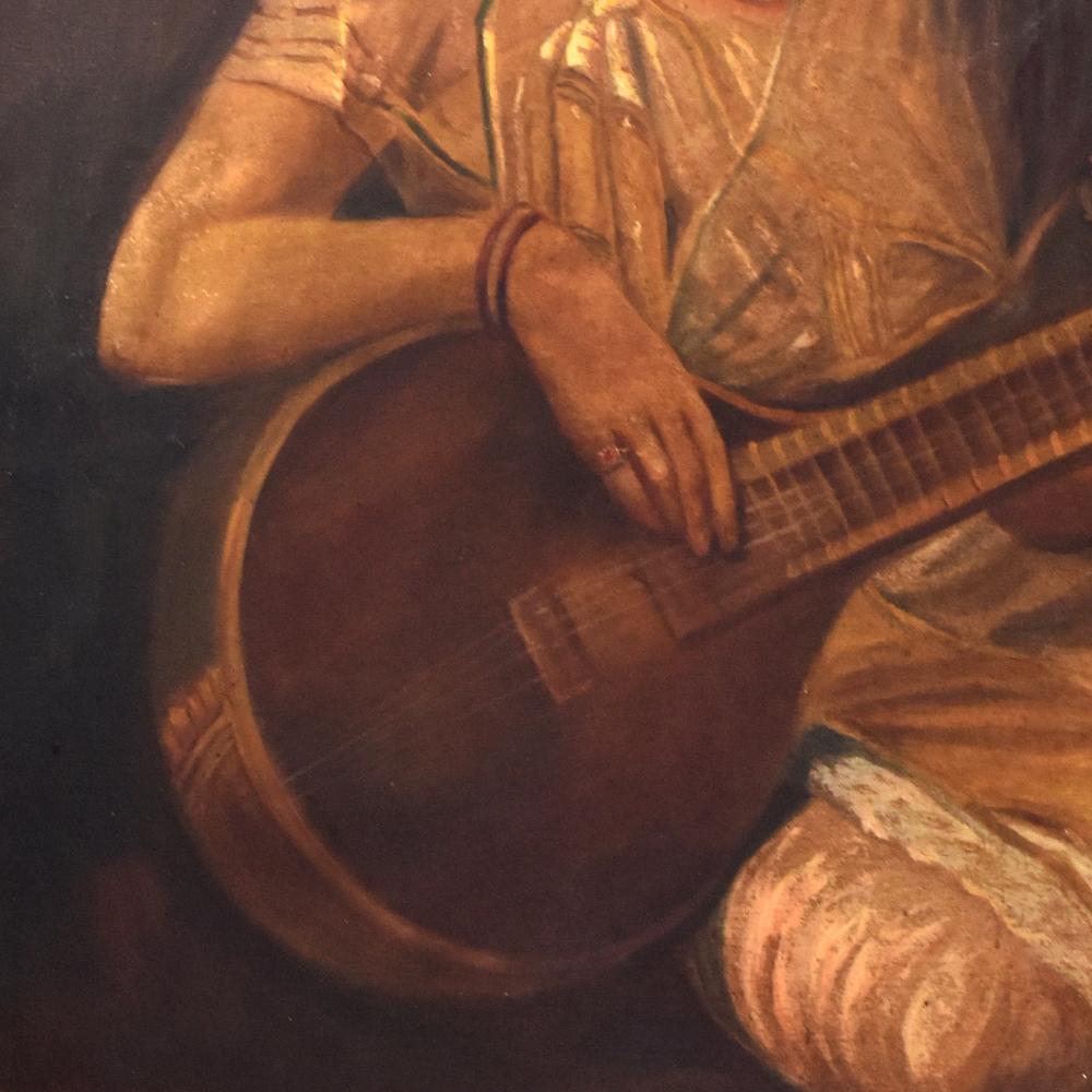 Immerse yourself in the enchanting melodies of the Sitar with this breathtaking canvas oil painting. Capturing the grace and artistry of a talented musician, this masterpiece will transport you to a world of timeless beauty and tranquility. Lose yourself in the soulful notes that seem to emanate from the canvas. The skilled artist has masterfully rendered the musician's focused expression, the delicate positioning of her fingers, and the graceful curve of the Sitar. This captivating piece will elevate any room, infusing it with a sense of refined elegance and cultural appreciation. Whether you're a music enthusiast, an art lover, or simply seeking to add a touch of sophistication to your home, this canvas oil painting is a must-have. Imagine it gracing the walls of your living room, hallway, or office, sparking conversations and inspiring moments of contemplation. Transform your space into a serene oasis with this stunning visual masterpiece.