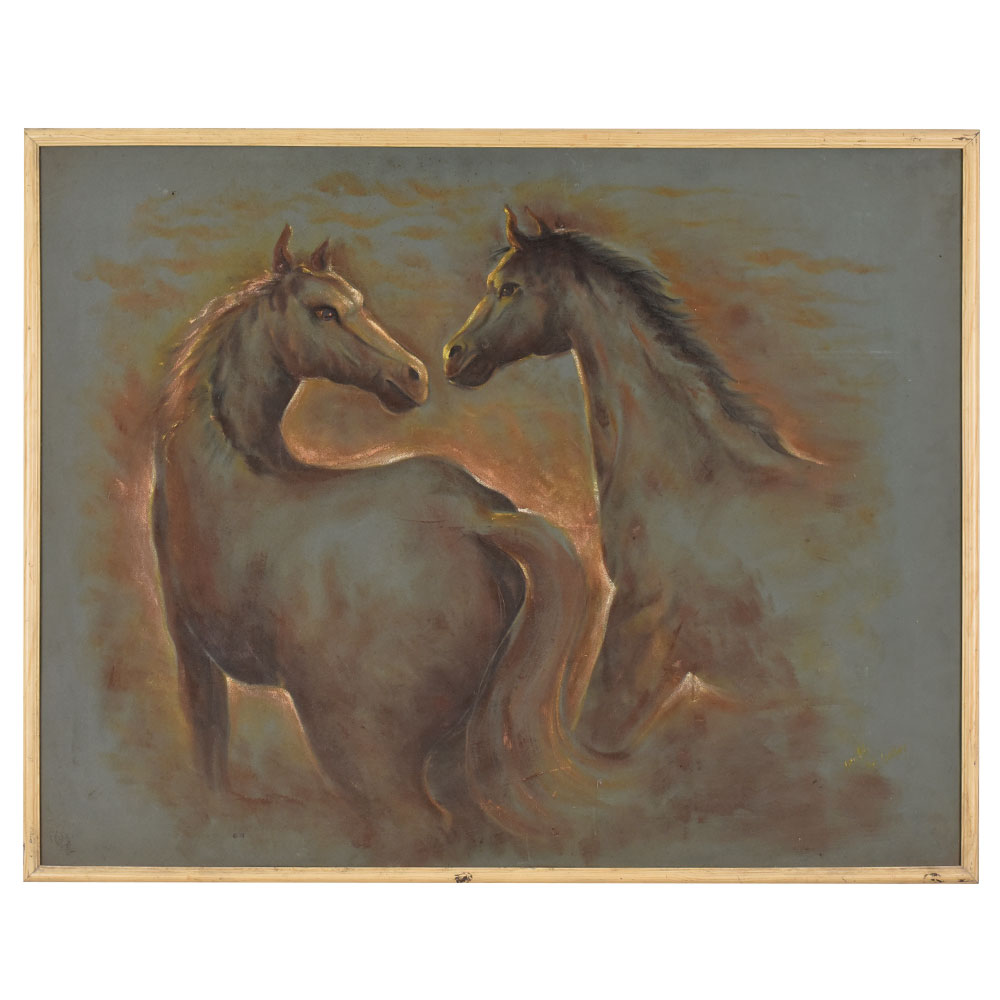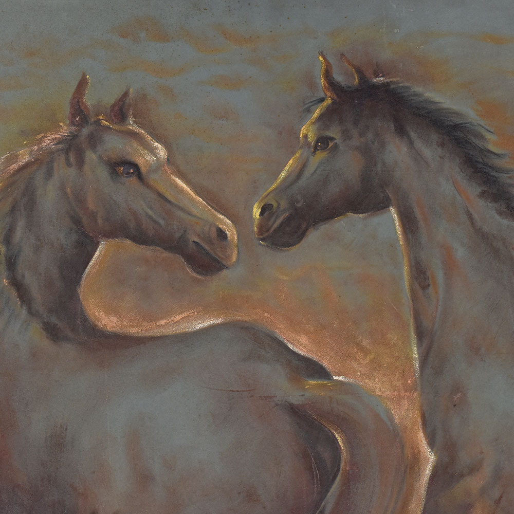 Elevate your decor with this graceful cloth painting of horses, a timeless piece that captures the spirit of strength and elegance. The artwork portrays two horses in a striking pose, facing each other with a sense of motion and connection. Hand-painted with earthy tones of brown, gold, and subtle highlights, this painting brings out the natural beauty and majesty of these magnificent animals. The fine detailing in the muscular form, mane, and expressions reflects the artist’s skilled craftsmanship and adds depth to the artwork. Set in a simple wooden frame, it makes for a versatile piece suitable for modern or traditional interiors. Perfect for living rooms, offices, or personal collections, this painting embodies energy, grace, and artistic finesse. It also serves as a thoughtful gift for art lovers, nature enthusiasts, or equestrian admirers.