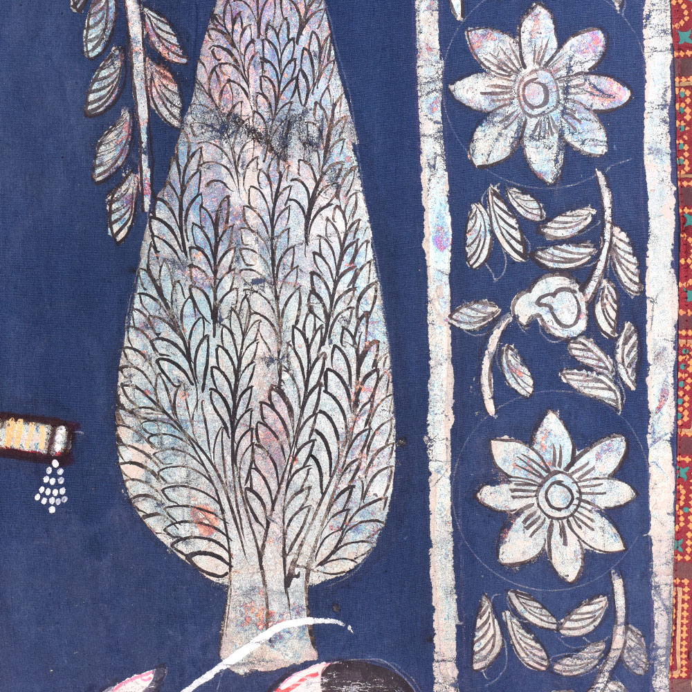 Discover the Celestial Beauty of Lord Krishna in this Exquisite Golconda Art Pichwai Painting Without Frame. Prepare to be captivated by the sheer splendor of this breathtaking Golconda Art Pichwai Painting depicting the divine Lord Krishna. Against a serene backdrop of deep blue, the painting showcases the enchanting Lord playing his flute beneath a majestic tree, surrounded by a herd of adoring cows. This exquisite Golconda Art Pichwai Painting is more than just a work of art - it's a window into the captivating world of Hindu mythology and the divine beauty of Lord Krishna. The painting's intricate silver detailing and the Lord's serene, captivating gaze will transport you to a realm of spiritual wonder and enchantment. Whether you're a collector of fine art, a devotee of Lord Krishna, or simply someone who appreciates the beauty of traditional Indian craftsmanship, this Pichwai painting is a must-have addition to your home or sacred space. Hang it in your living room, meditation area, or puja room, and let the painting's ethereal energy infuse your space with a sense of peace, harmony, and divine connection.
